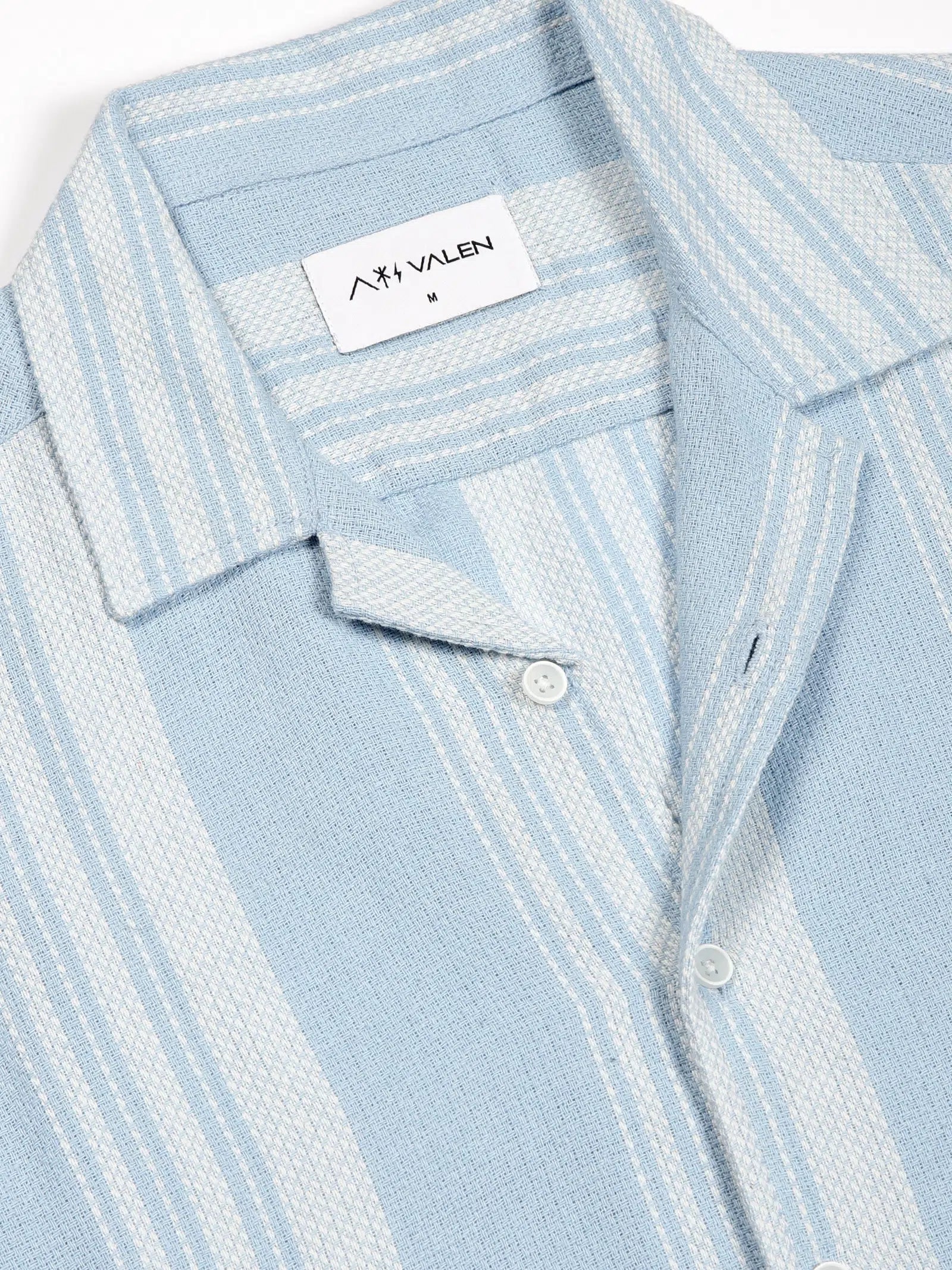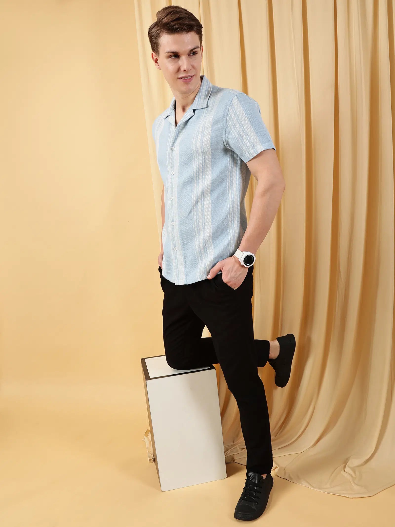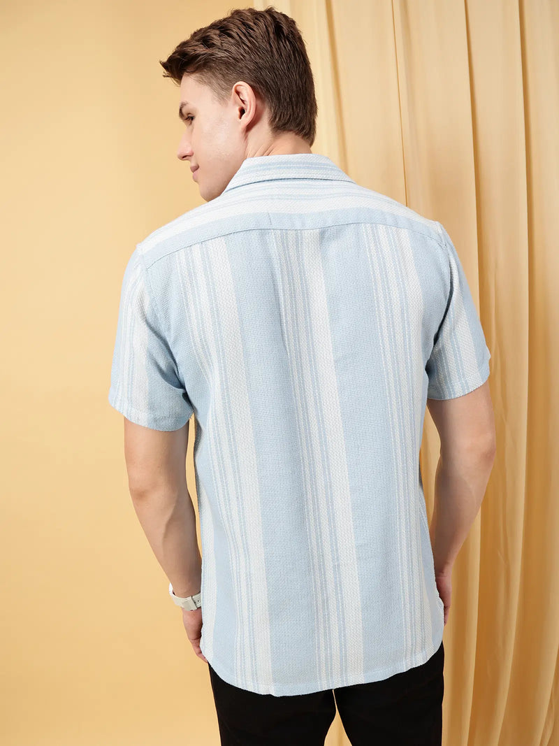 Valen Mens's Stripes Cuban Collar Causal Shirt
