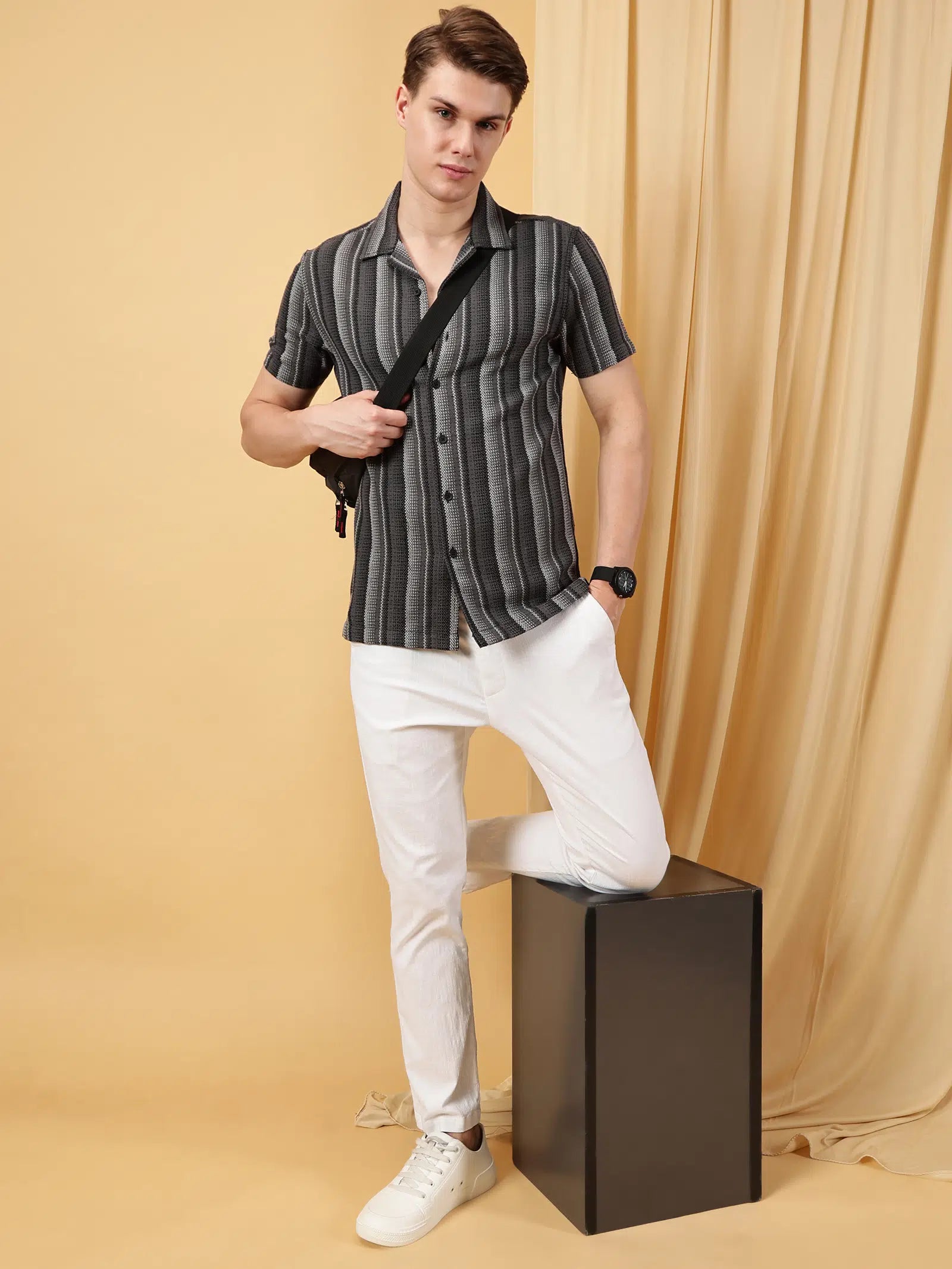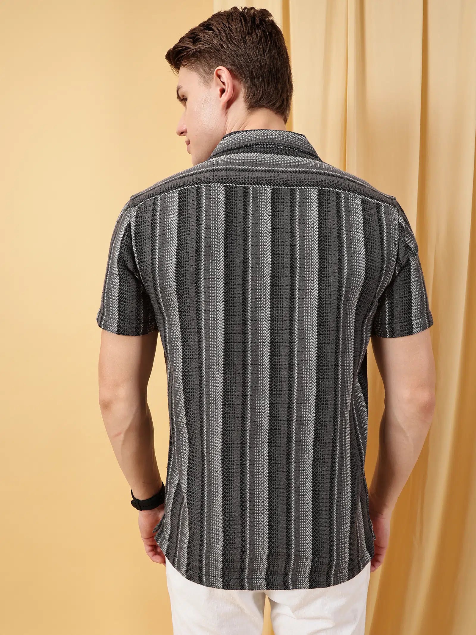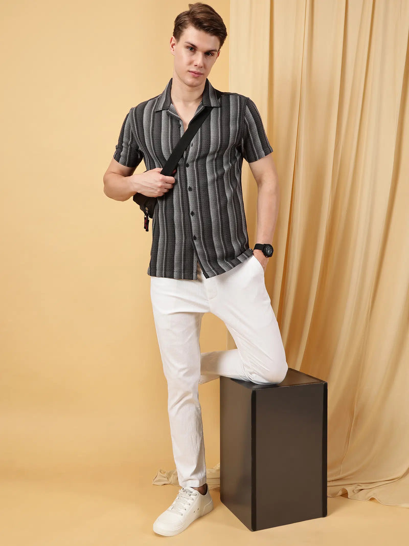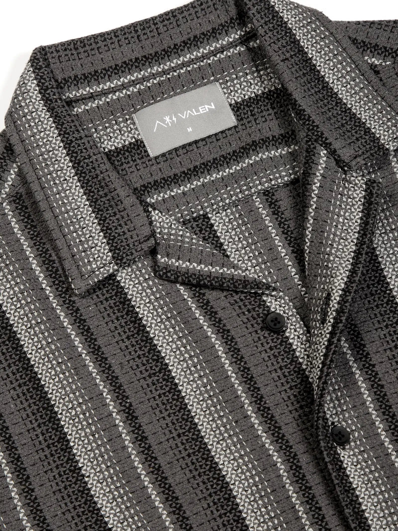 Valen Mens's Stripes Cuban Collar Causal Shirt