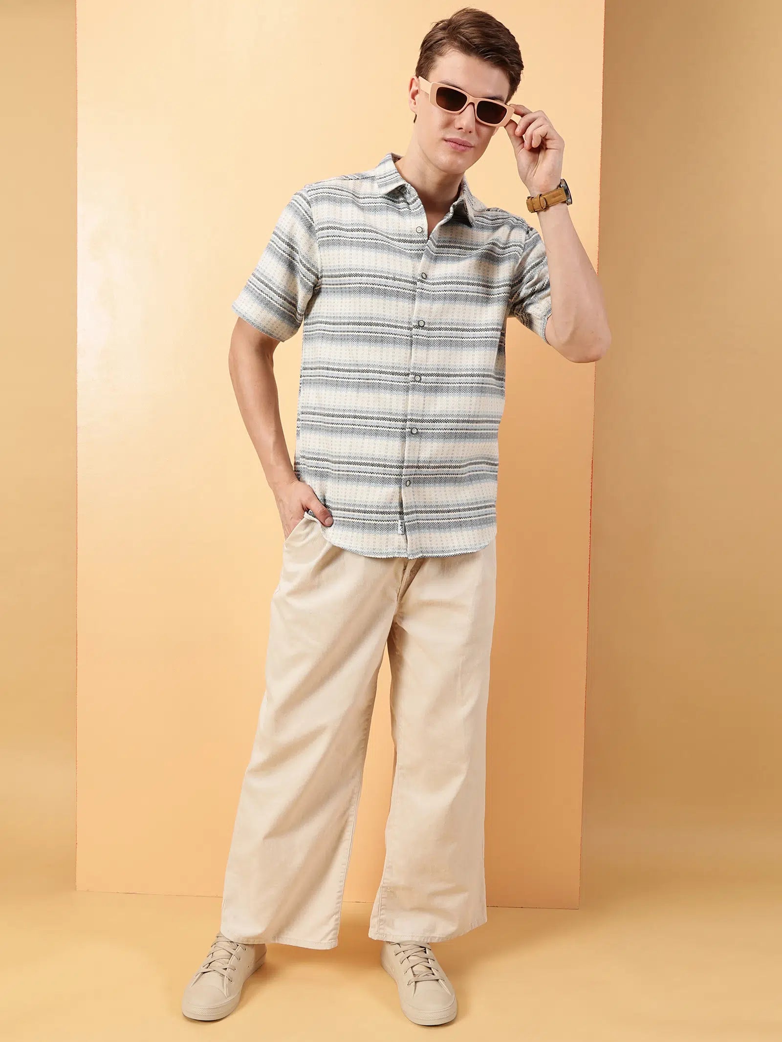 Valen Men's Relaxed Fit Blue Stripes Causal Shirt