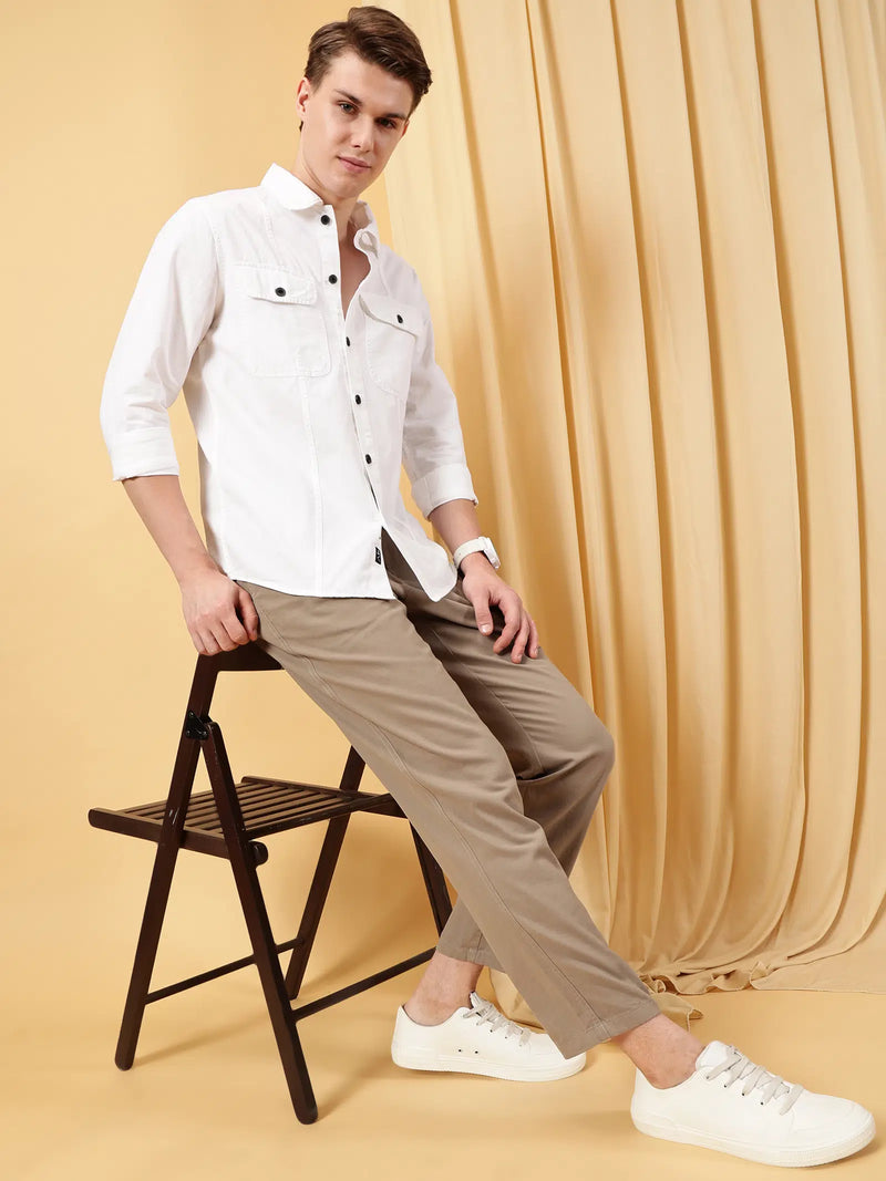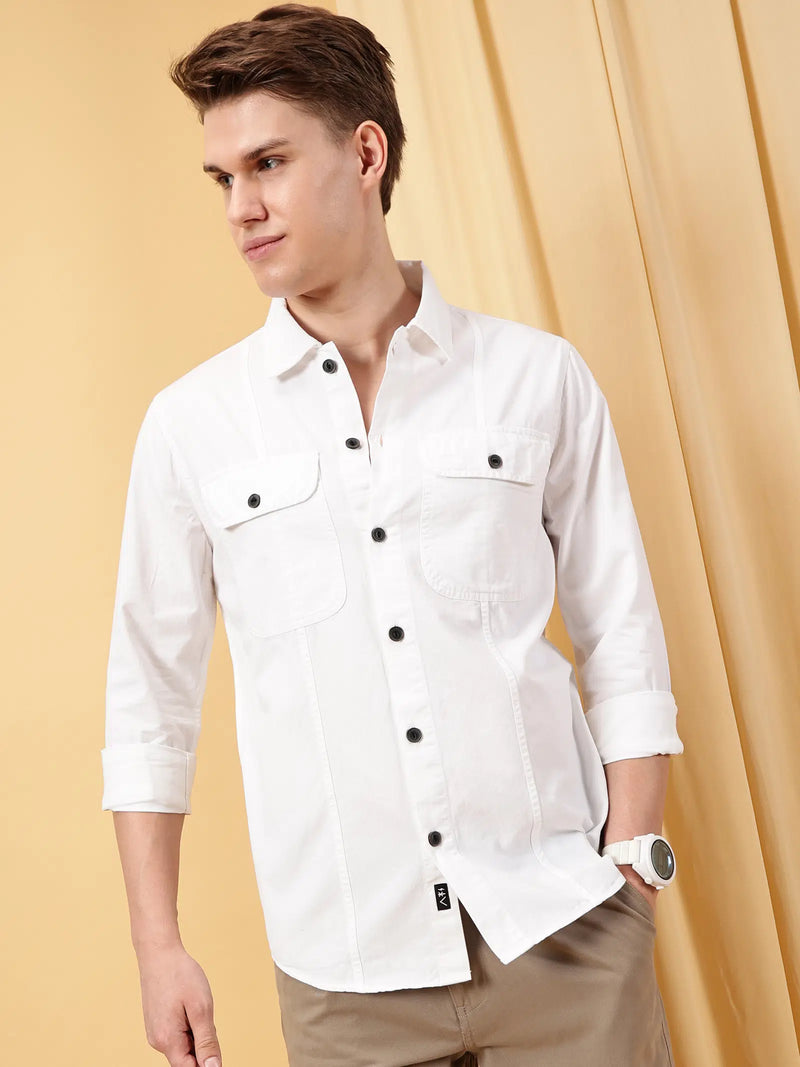 This shirt brings style and function together with a regular collar, double flap pockets, and a trendy front cut-and-sew design. Perfect for adding a little extra flair to your everyday look!