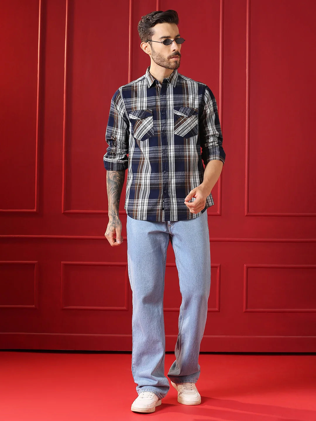This shirt brings style and function together with a regular collar, double flap pockets, and a trendy front cut-and-sew design. Perfect for adding a little extra flair to your everyday look!
