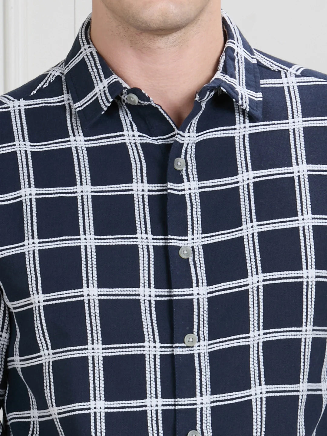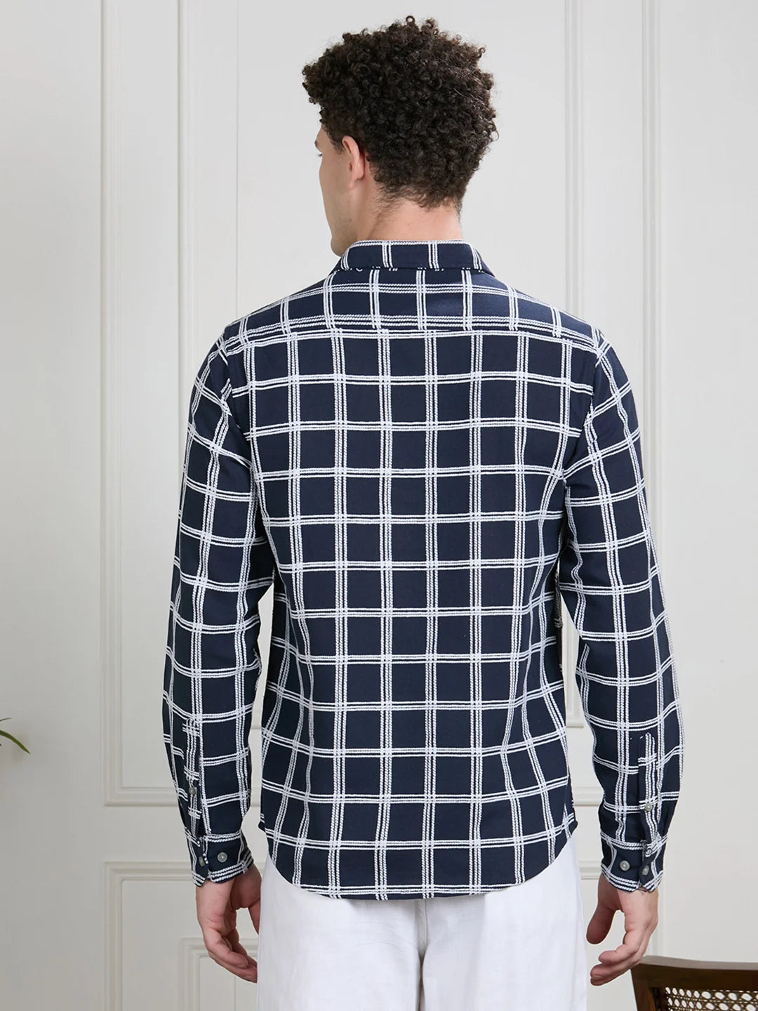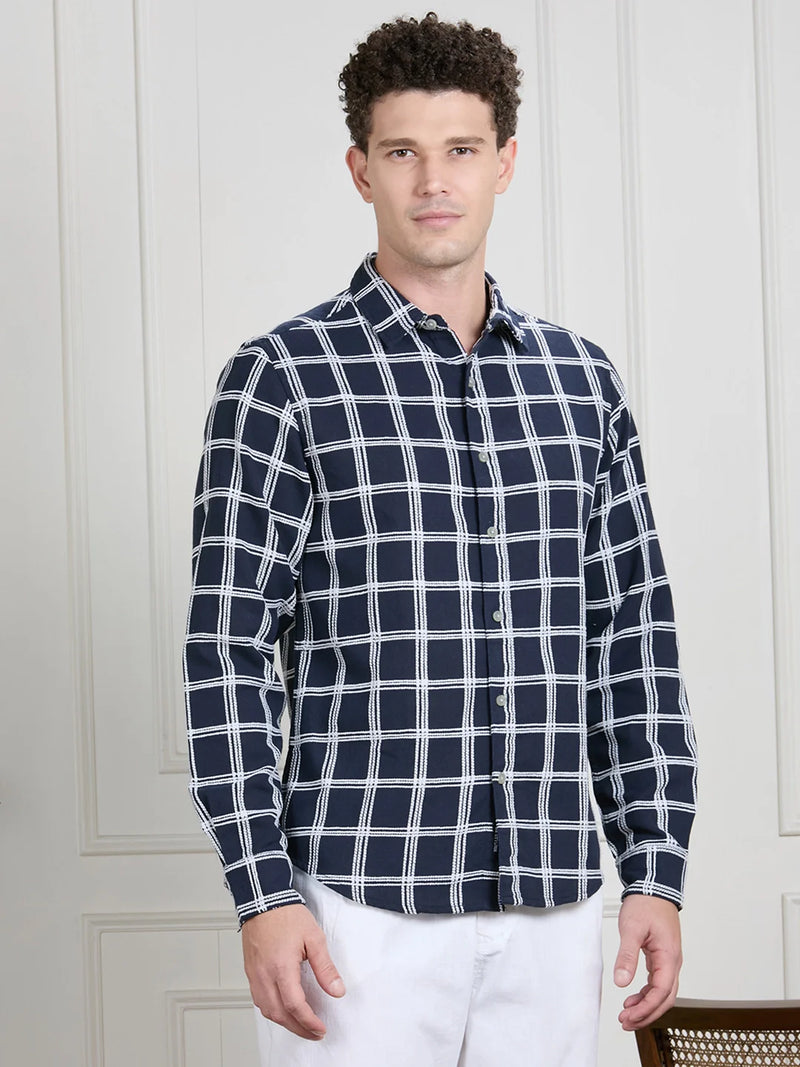 • Valen Club Men's Casual Shirt With Spread Collar Cotton Long Sleeves Checked Shirt