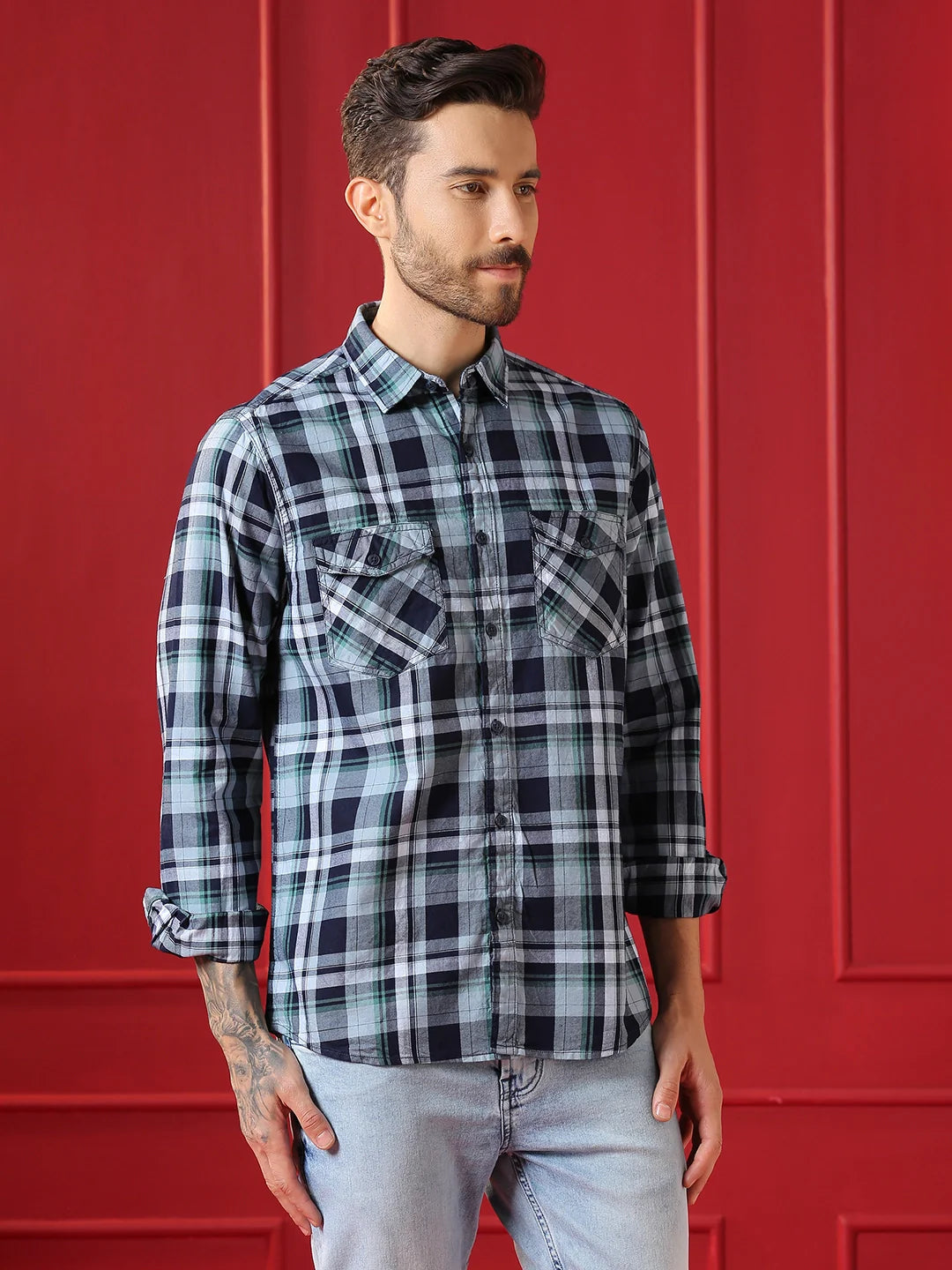 This shirt brings style and function together with a regular collar, double flap pockets, and a trendy front cut-and-sew design. Perfect for adding a little extra flair to your everyday look!