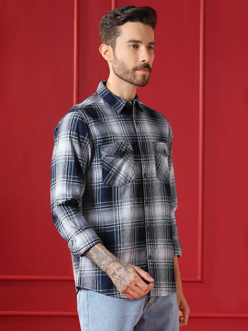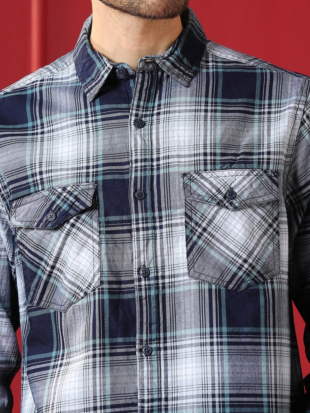 This full-sleeve shirt with a regular collar features a bold long patch on the front and double flap pockets for a mix of style and practicality. Perfect for a sharp, standout look!