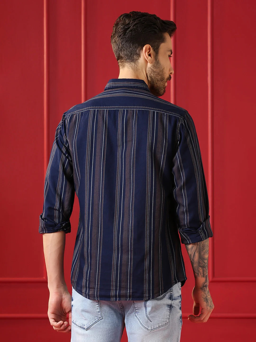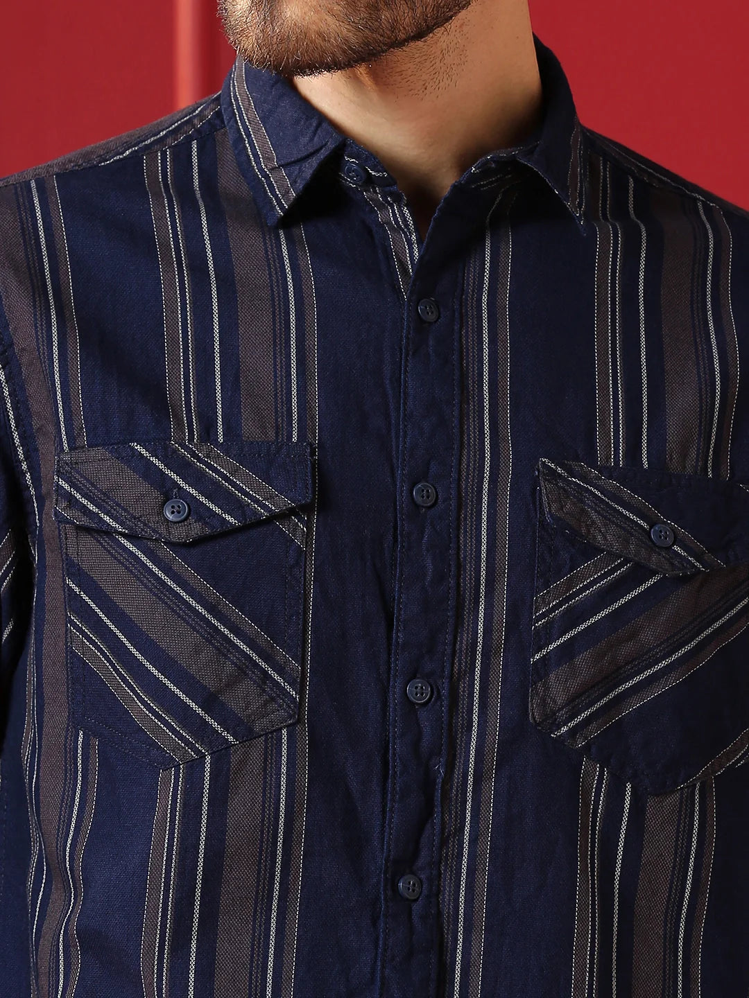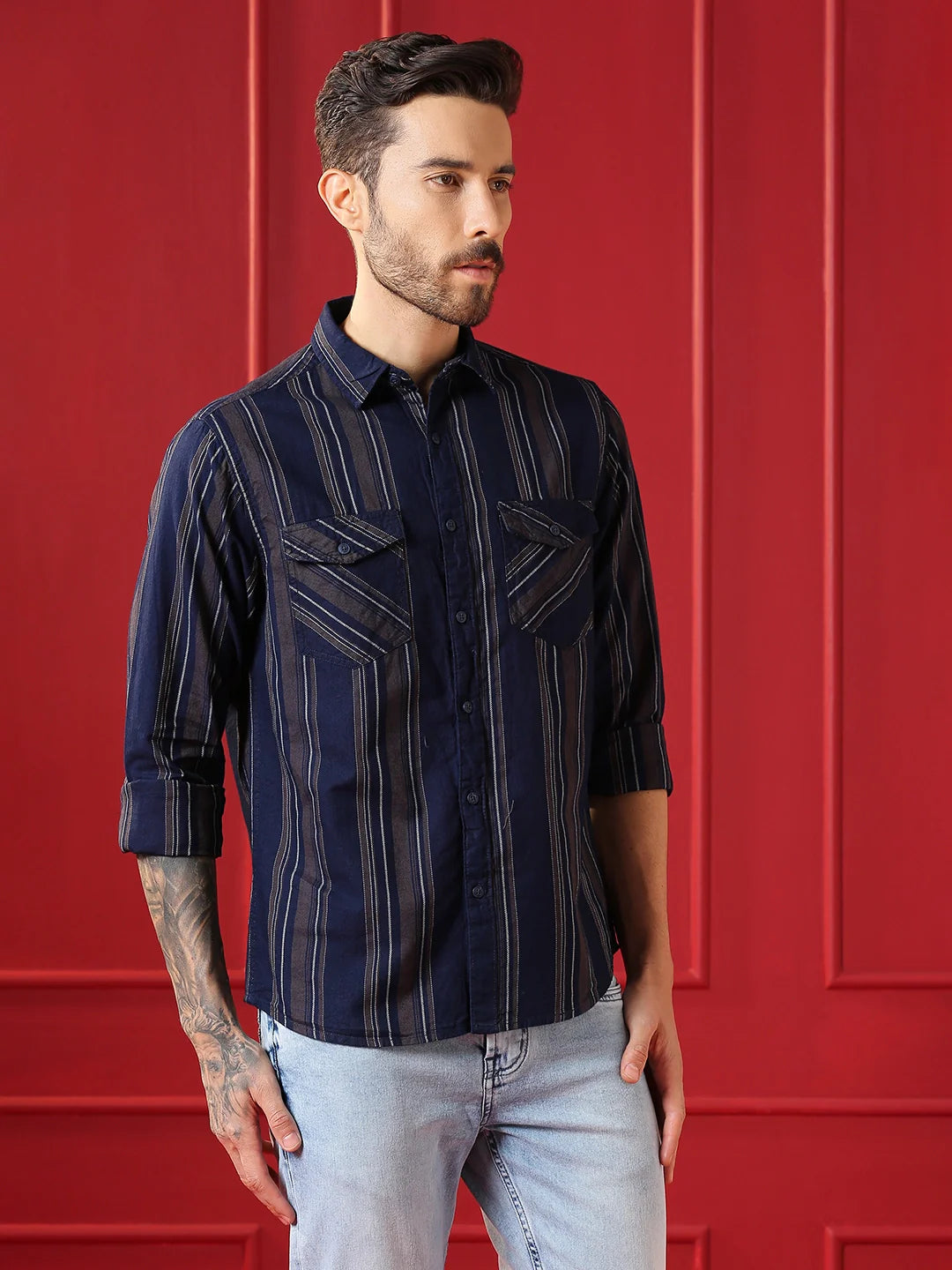 This shirt features a regular collar and a single diamond-shaped pocket for a unique twist on a classic look. Simple, stylish, and perfect for any occasion!