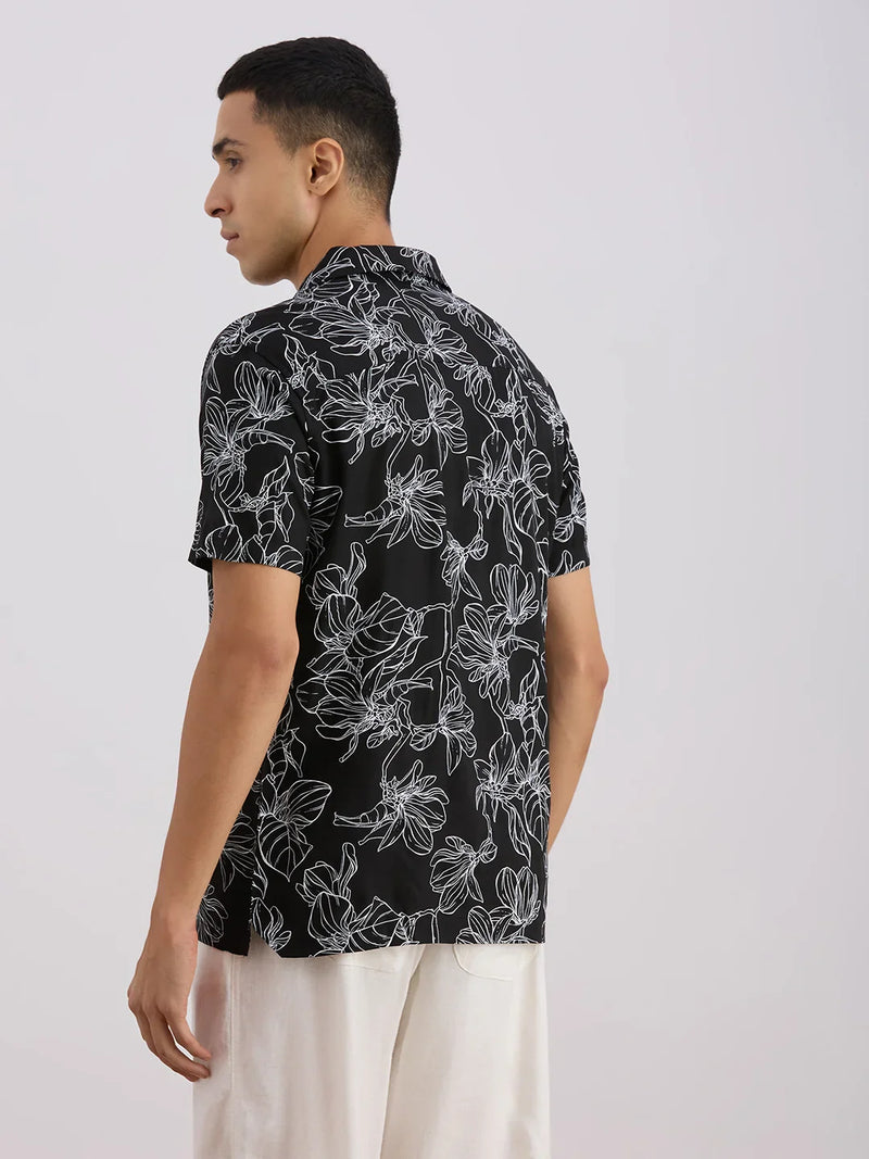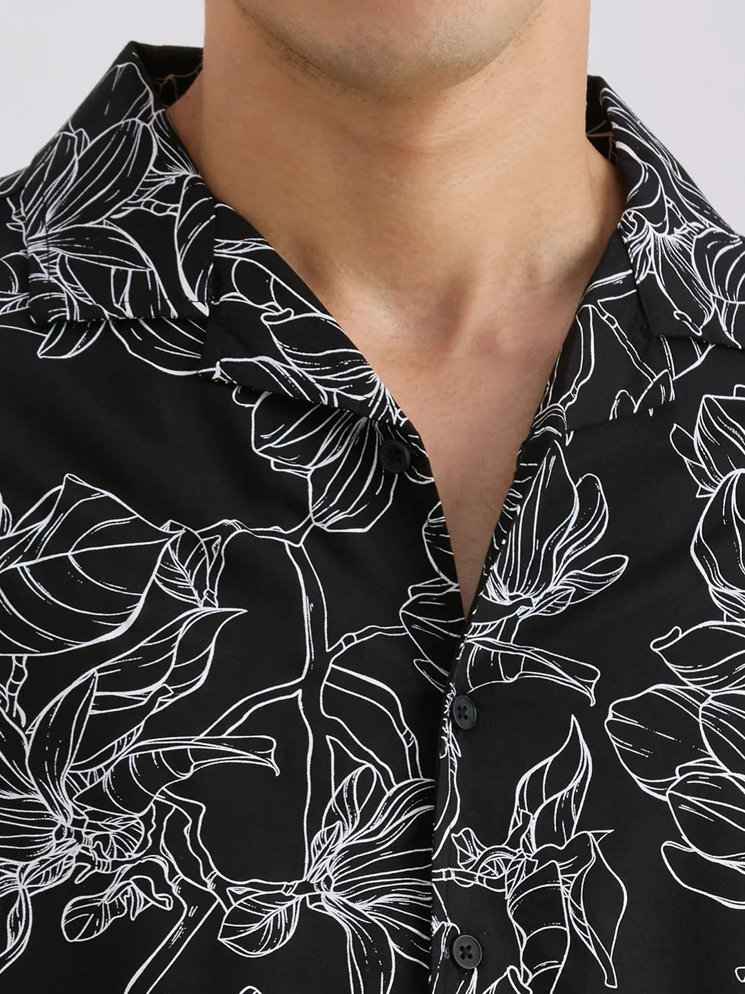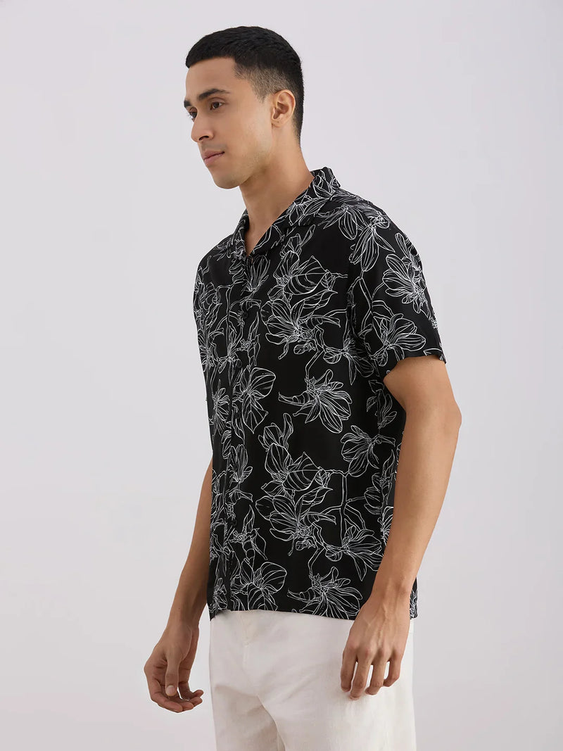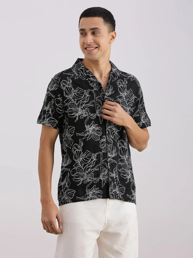 Valen Club Men's Casual Shirt With Cuban Collar Cotton Short Sleeves Printed Shirt