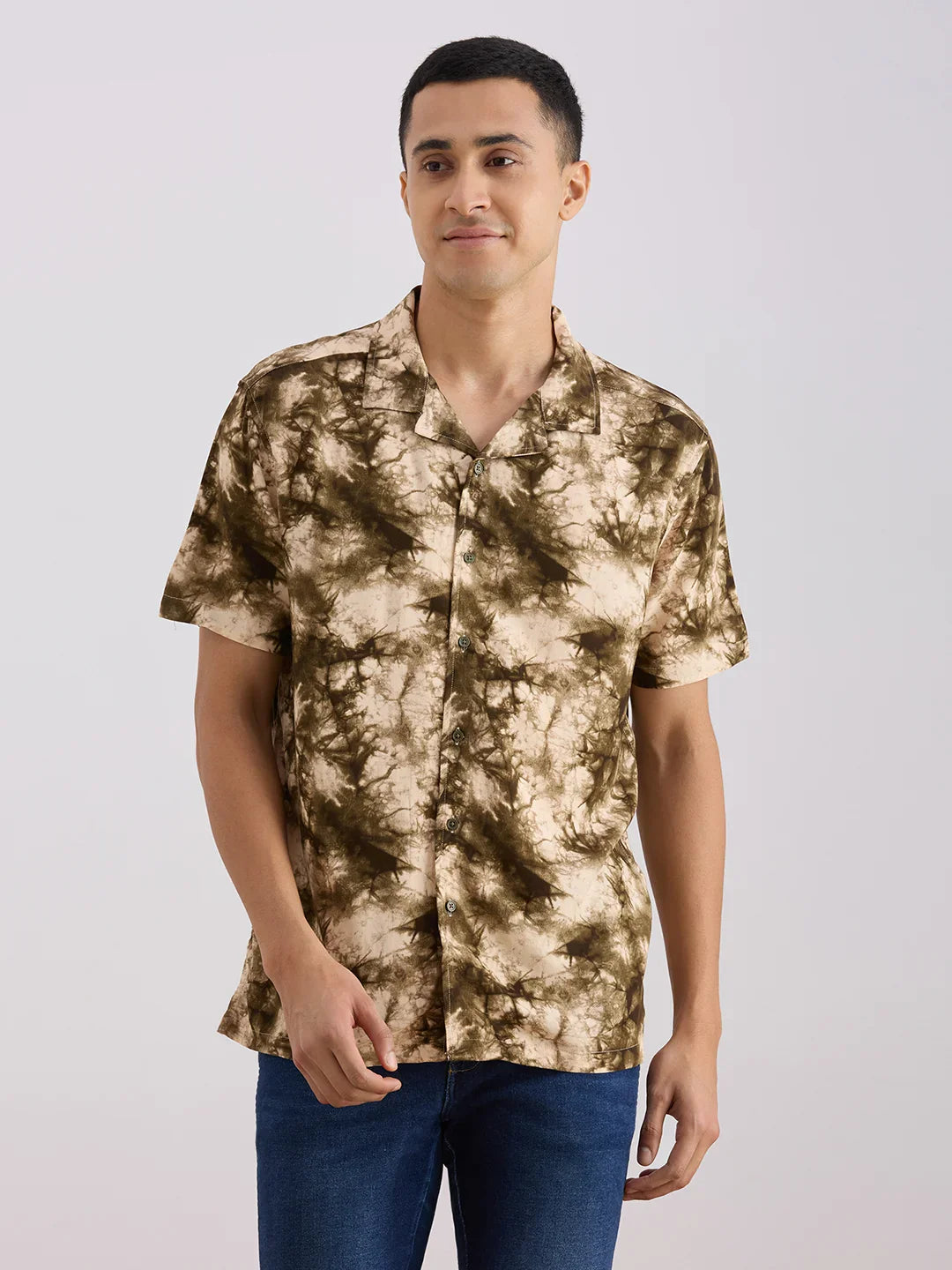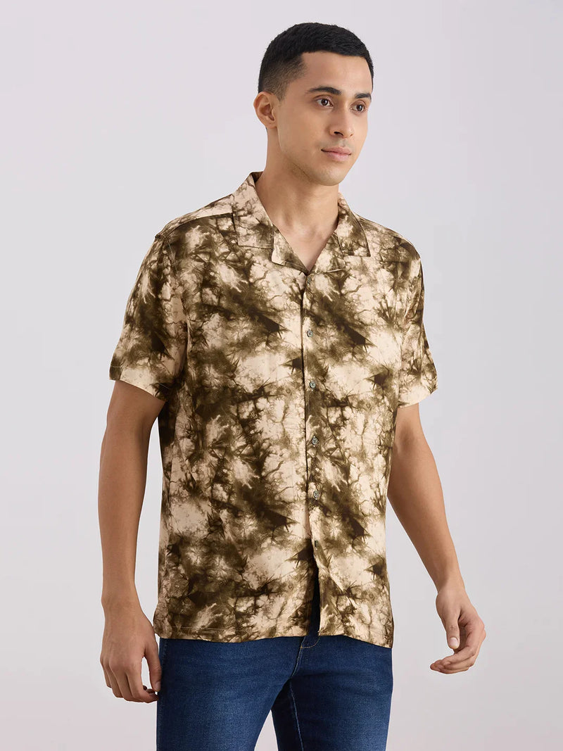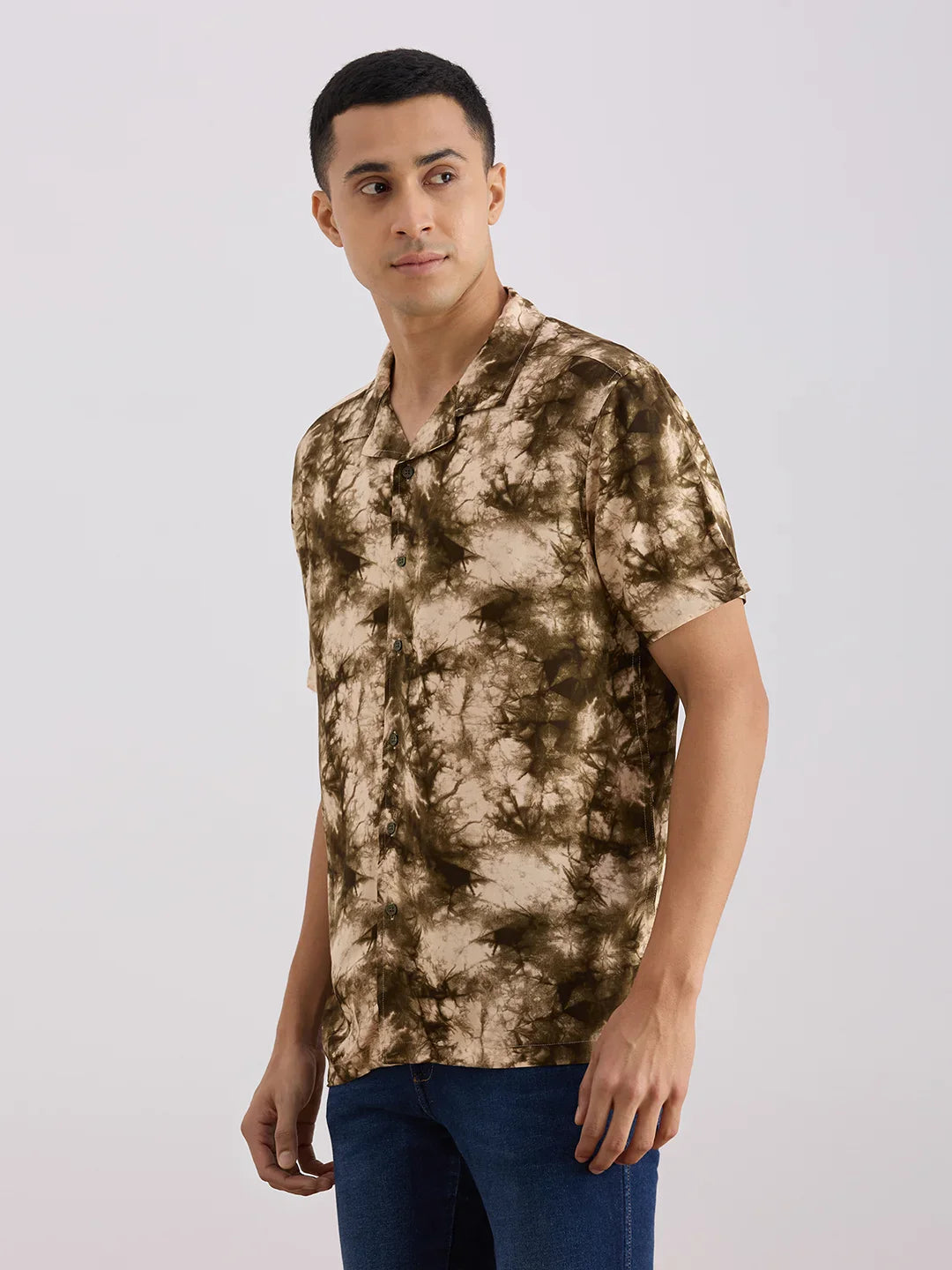 Valen Club Men's Casual Shirt With Cuban Collar Viscose Rayon Short Sleeves Printed Shirt