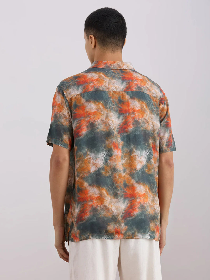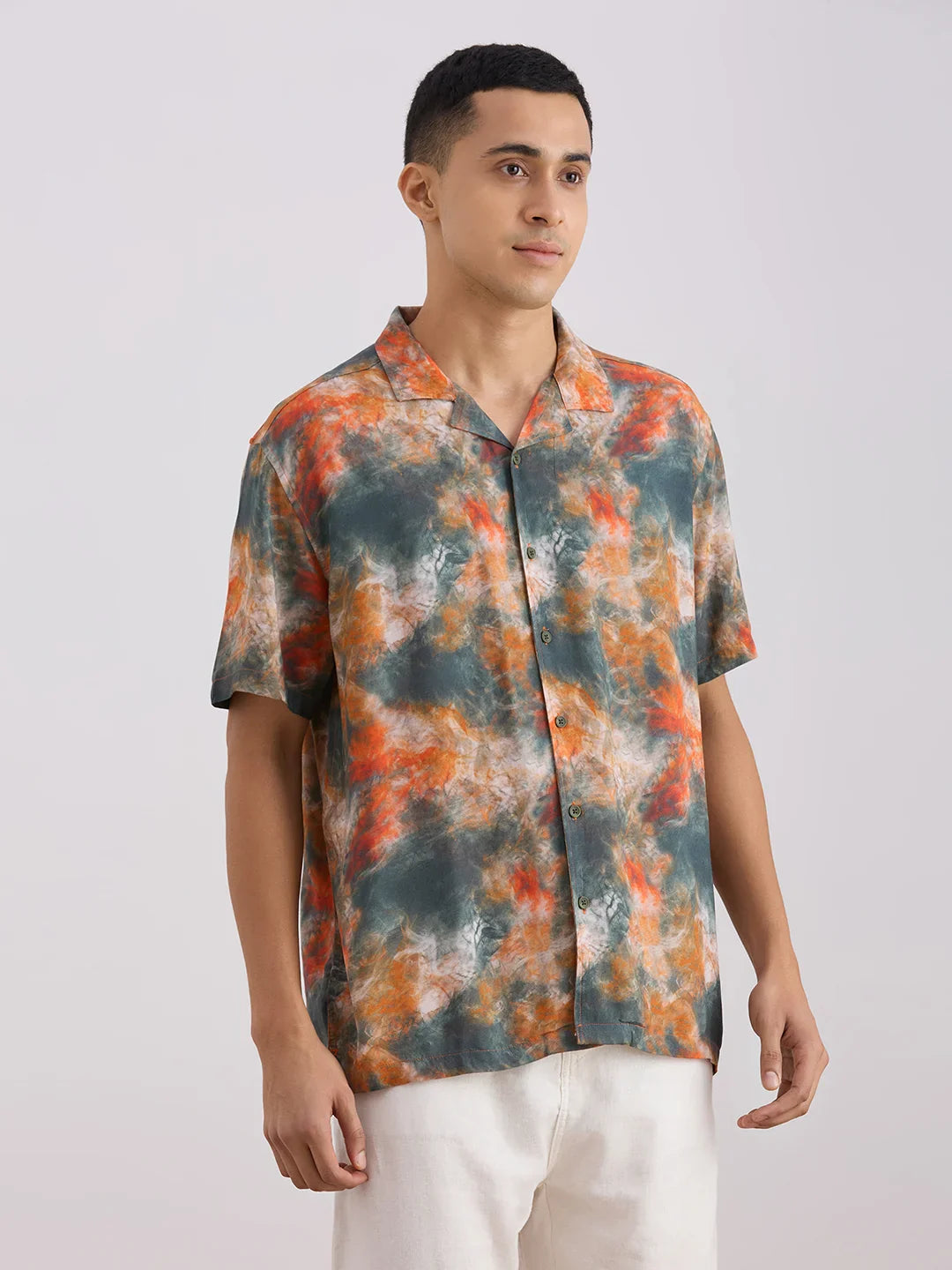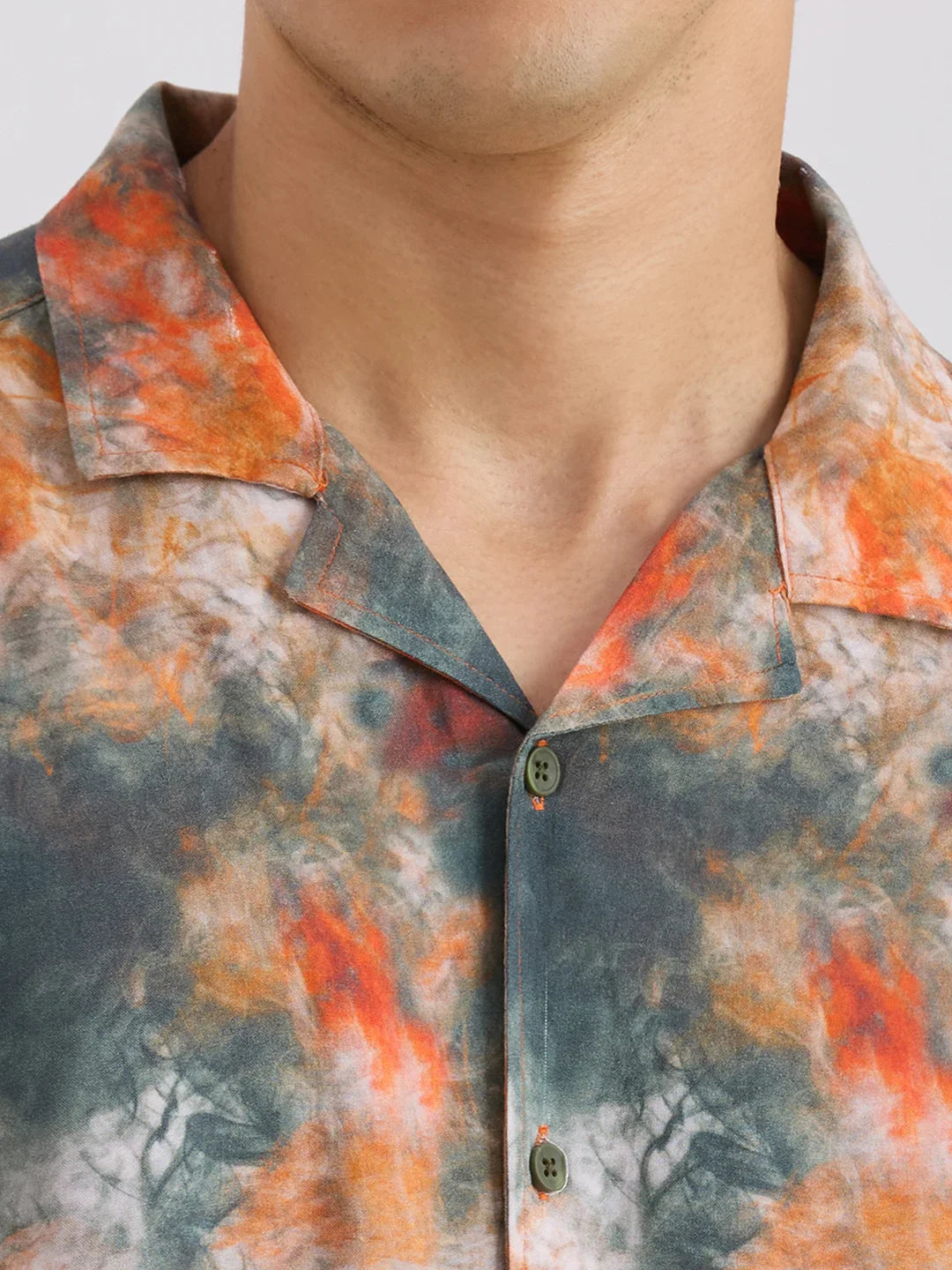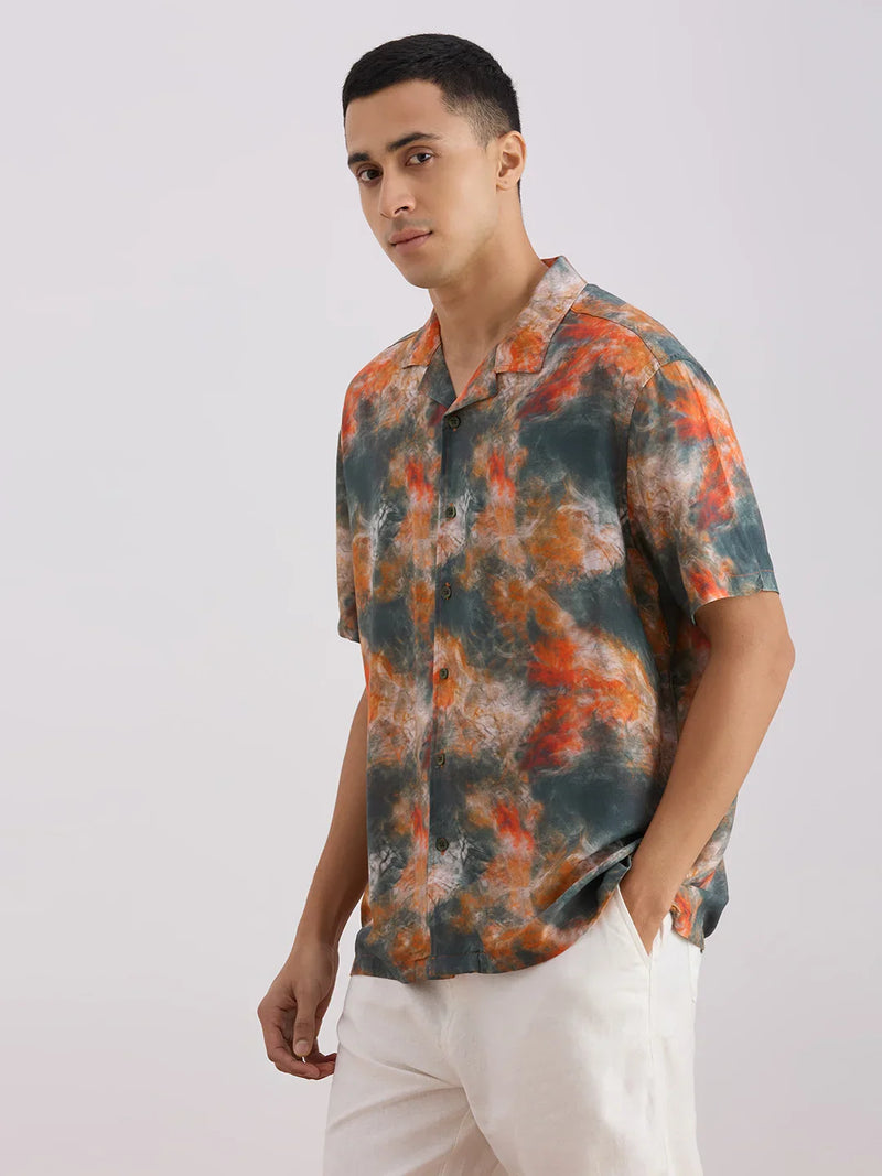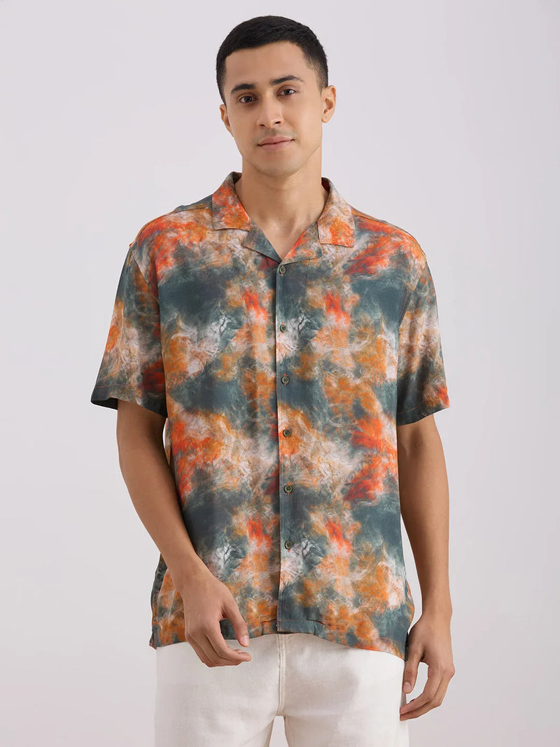 Valen Club Men's Casual Shirt With Cuban Collar Viscose Rayon Short Sleeves Printed Shirt