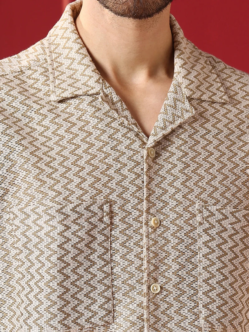Stay cool and comfy in this camp collar shirt with bottom slits for easy movement. No pockets, just pure relaxed vibes!