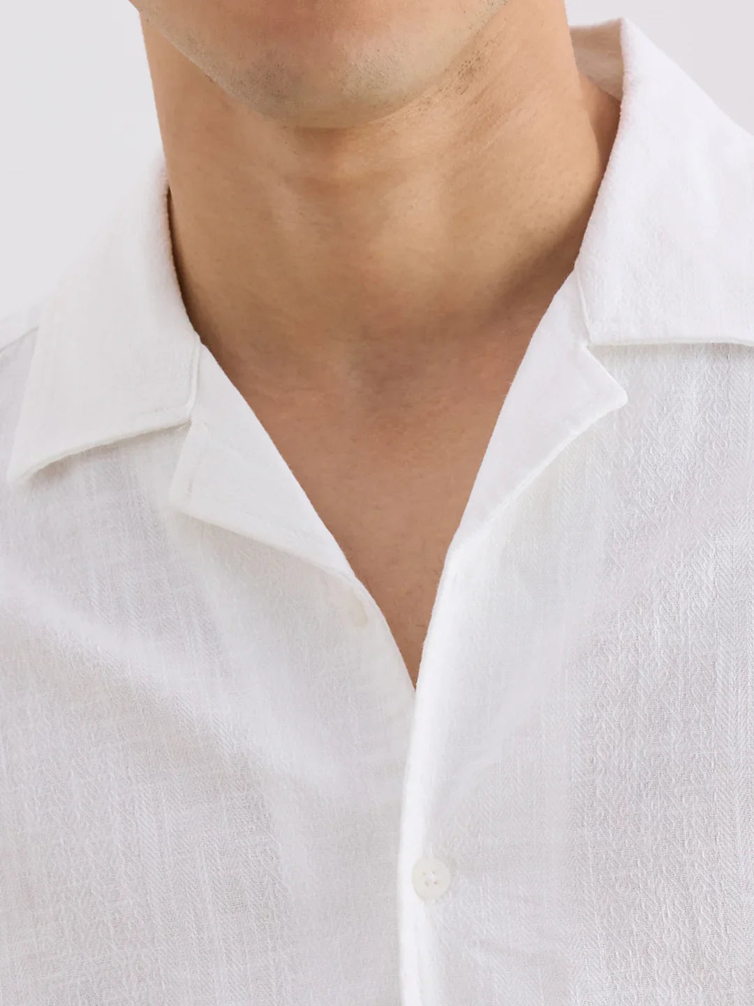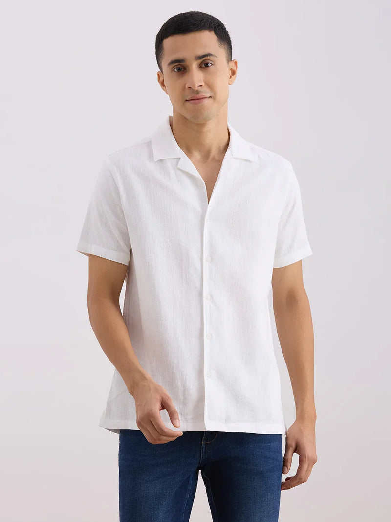 Stay cool and comfy in this camp collar shirt with bottom slits for easy movement. No pockets, just pure relaxed vibes!