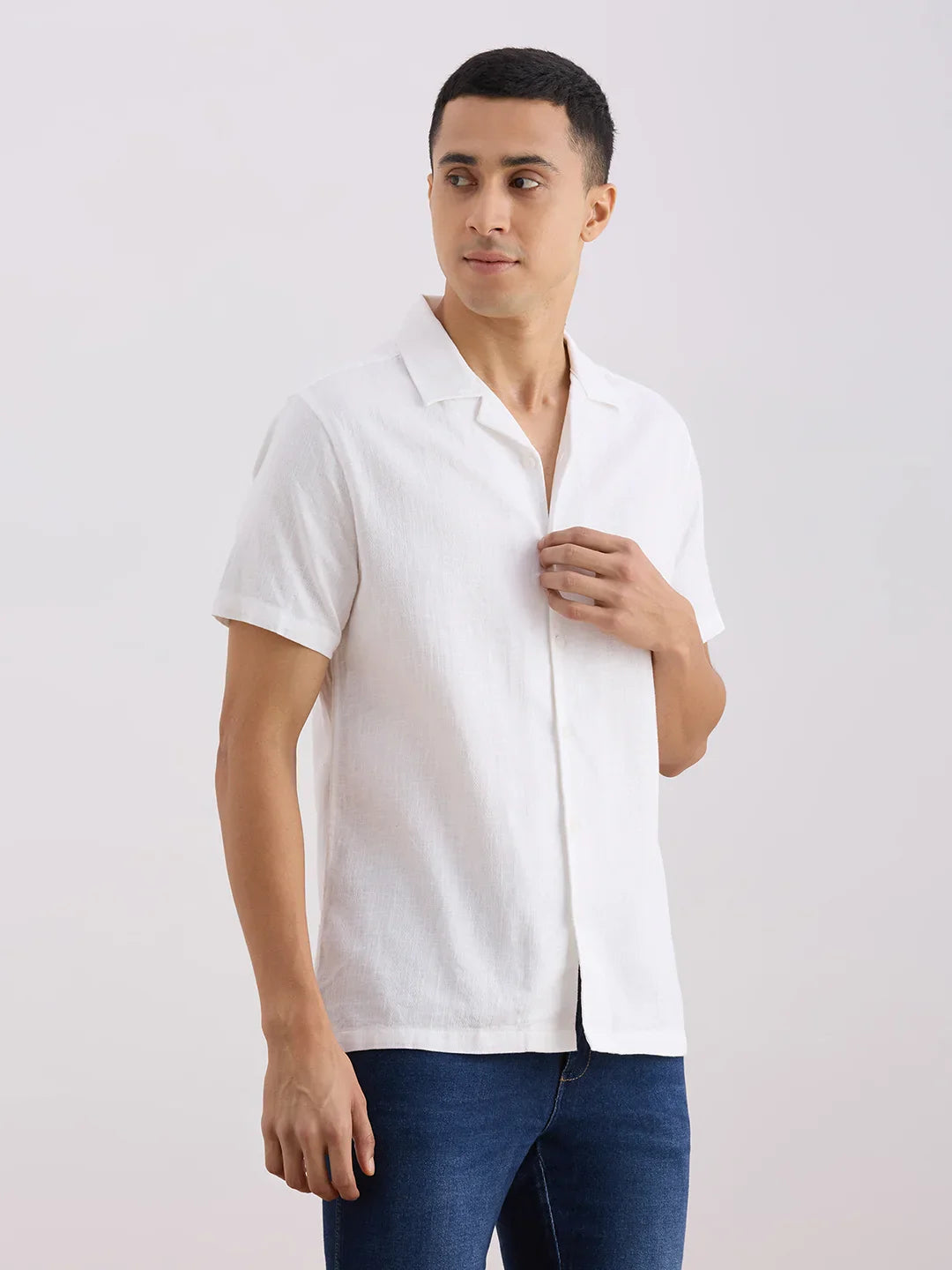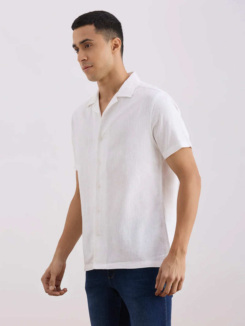 Valen Club Men's Casual Shirt With Cuban Collar Cotton Short Sleeves Solid Shirt