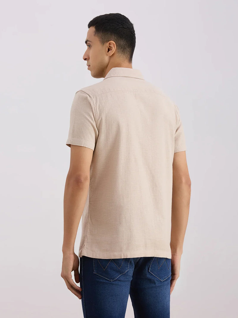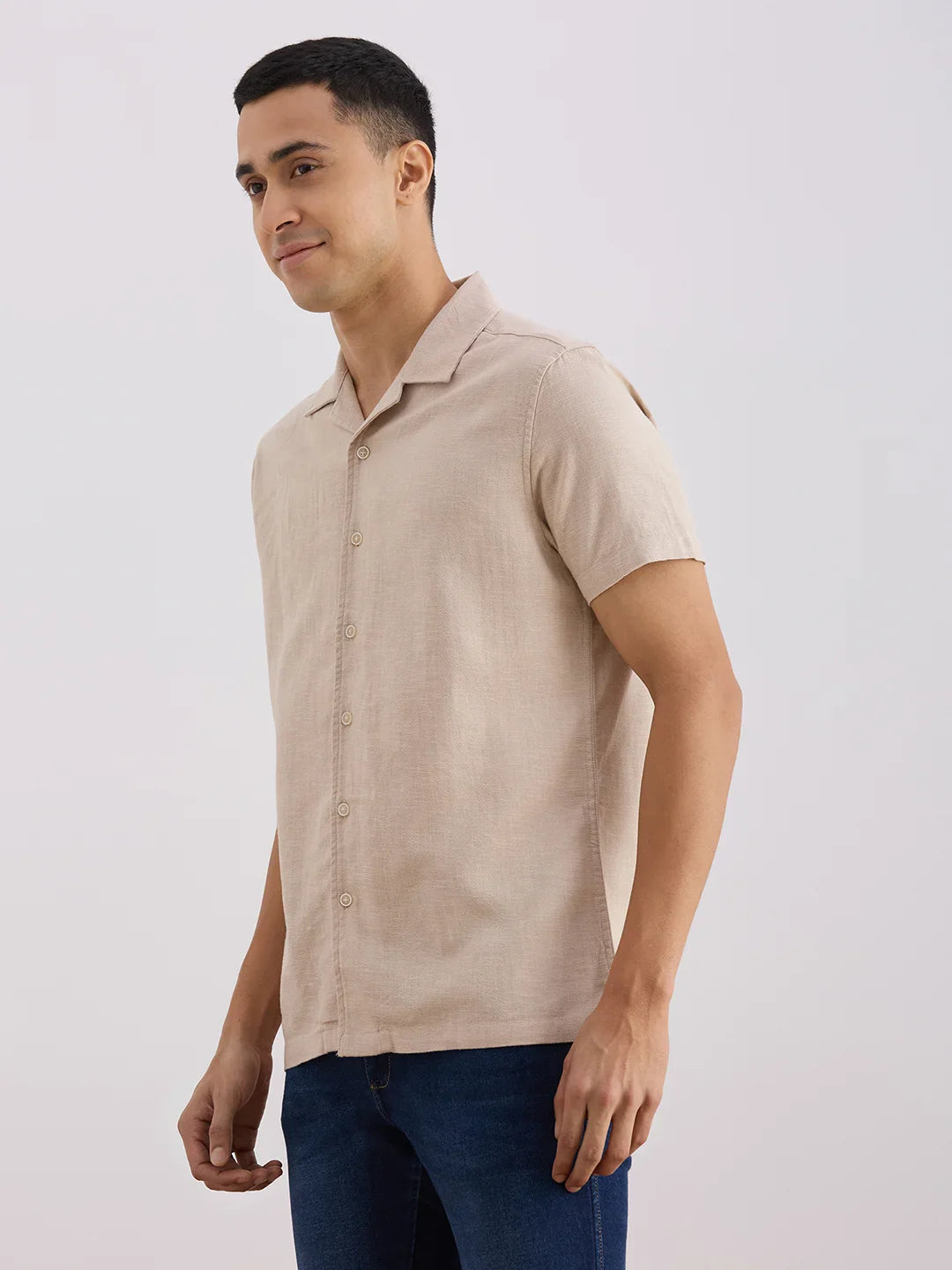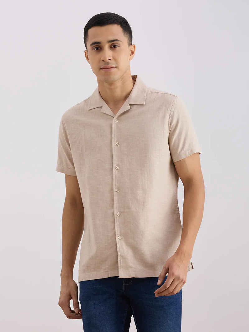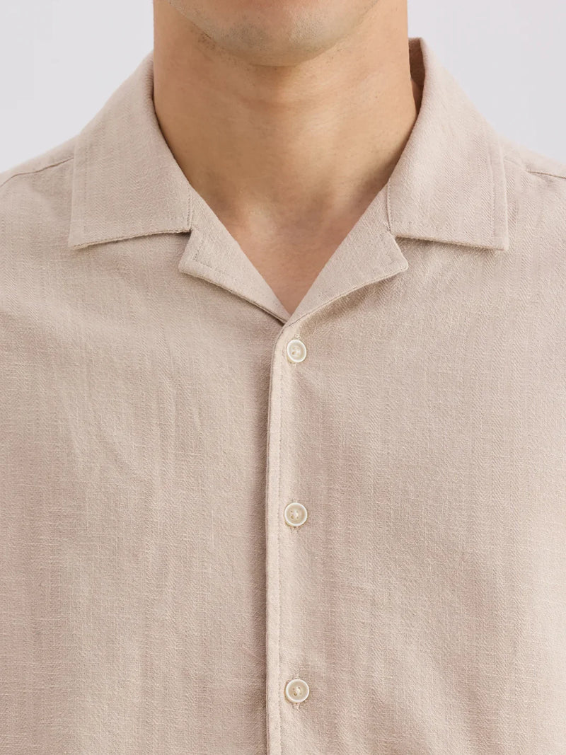 Stay cool and comfy in this camp collar shirt with bottom slits for easy movement. No pockets, just pure relaxed vibes!