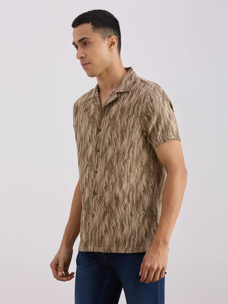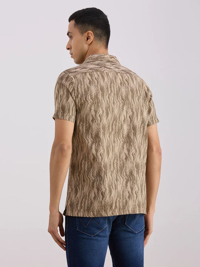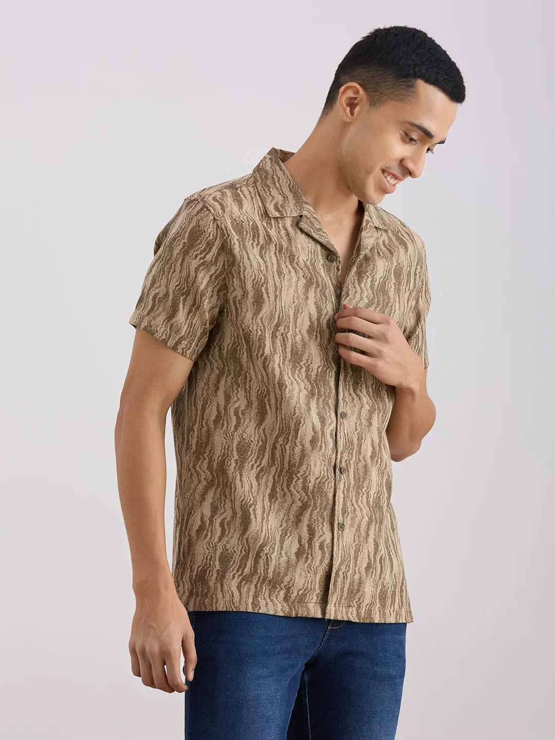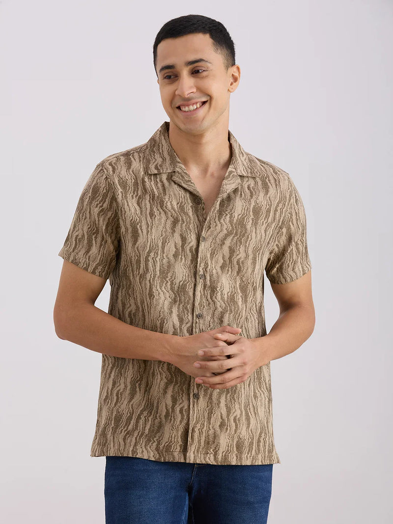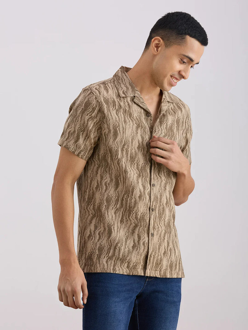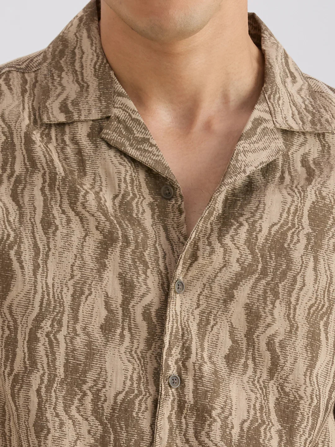 Valen Club Men's Casual Shirt With Cuban Collar Cotton Short Sleeves Printed Shirt