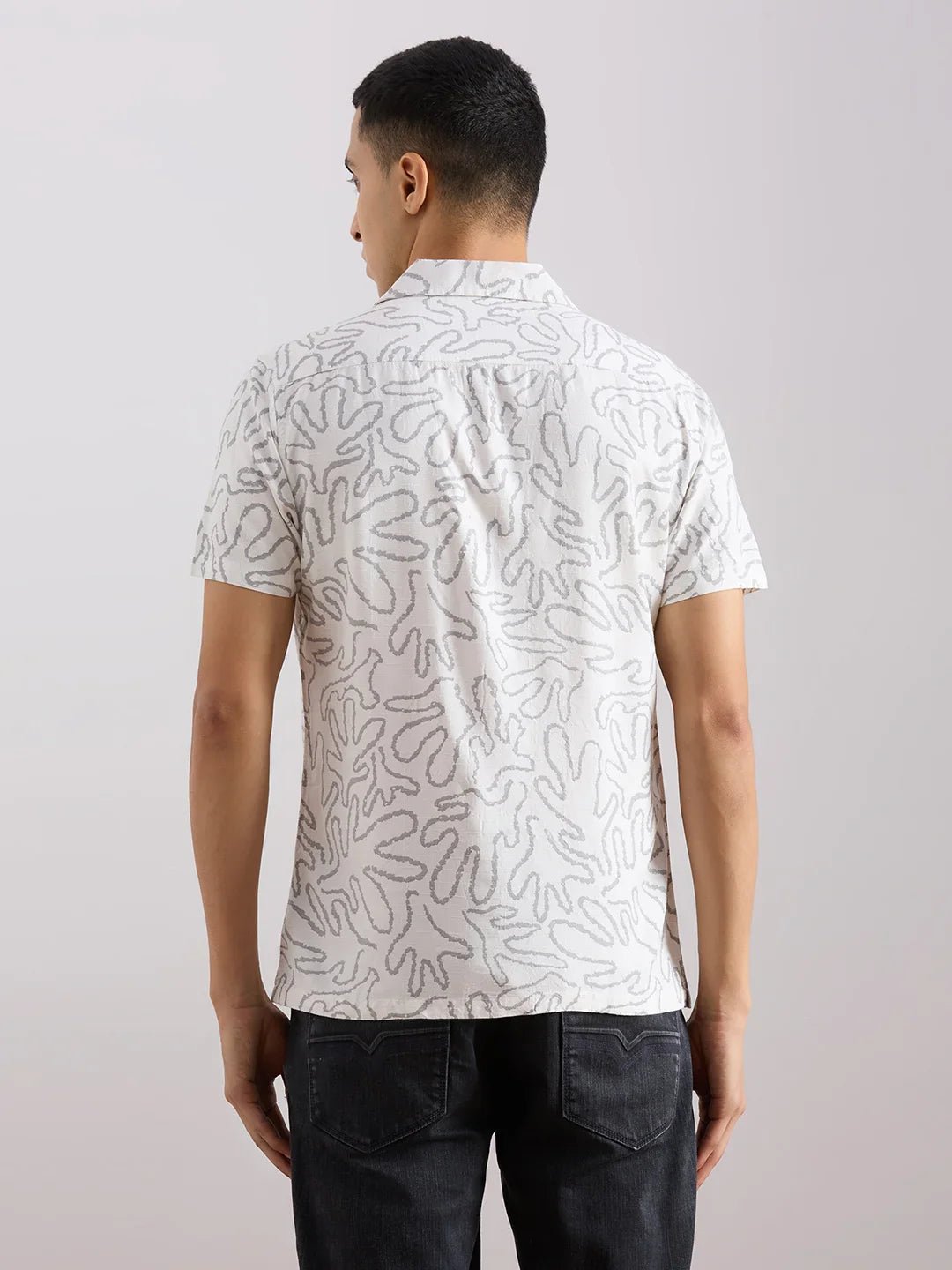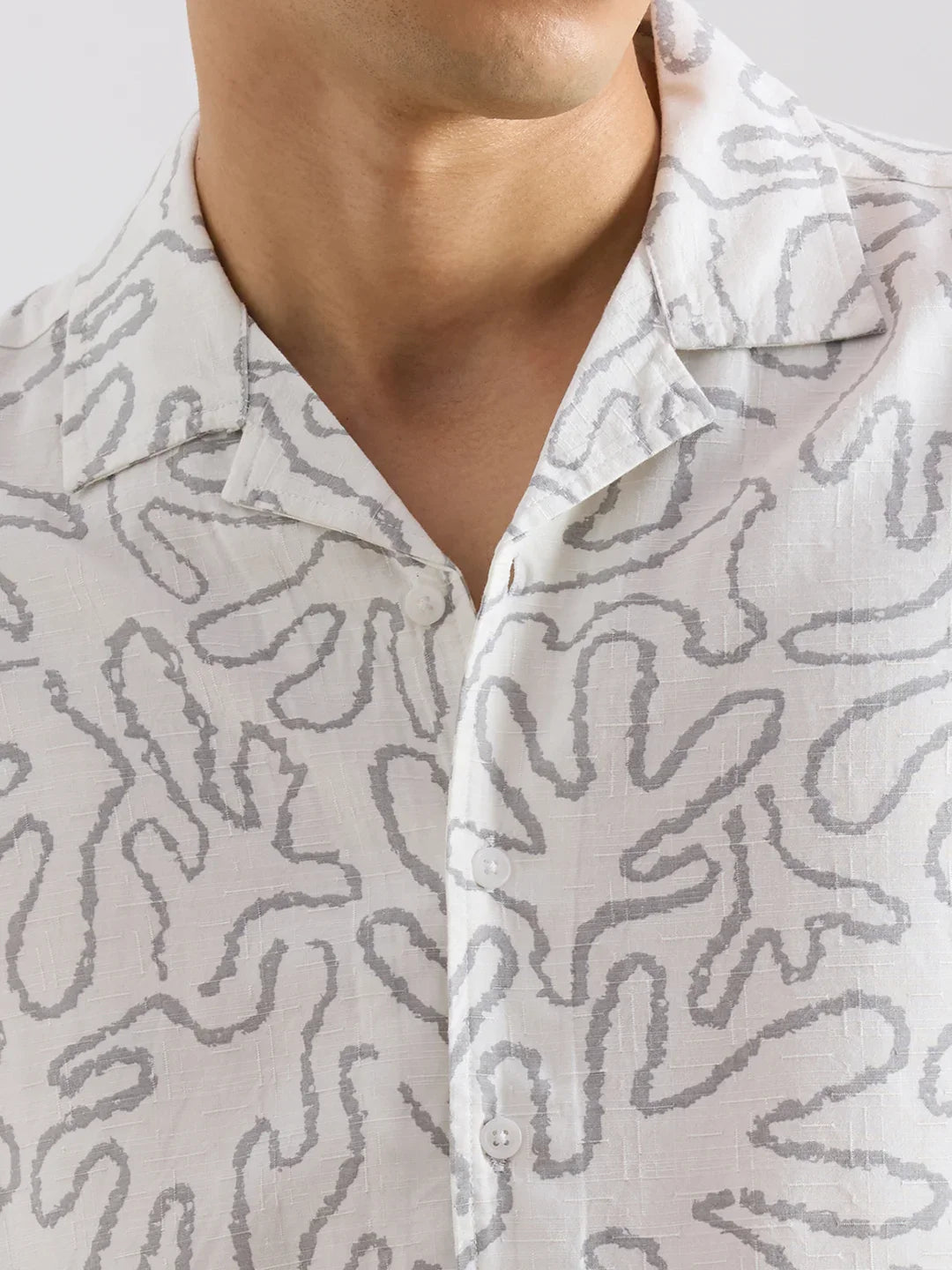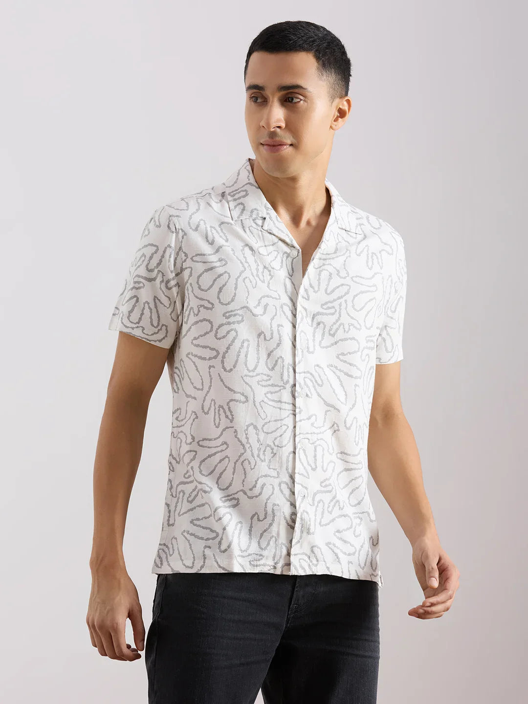 Valen Club Men's Casual Shirt With Cuban Collar Cotton Short Sleeves Printed Shirt