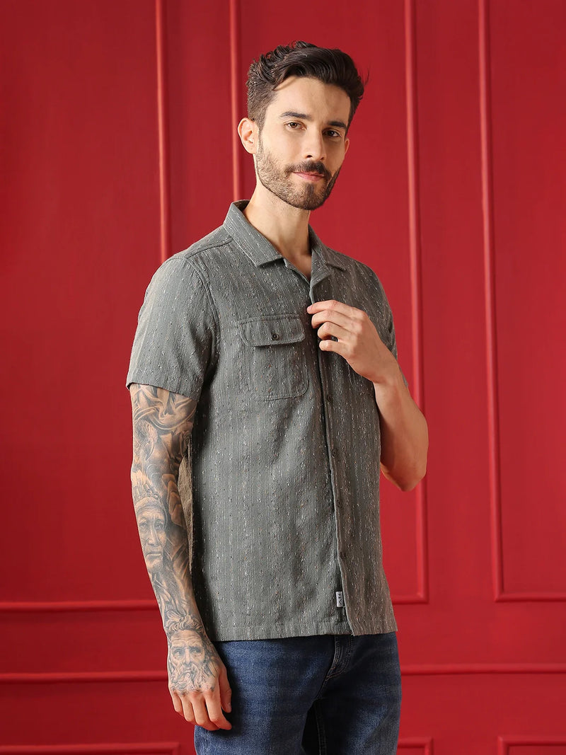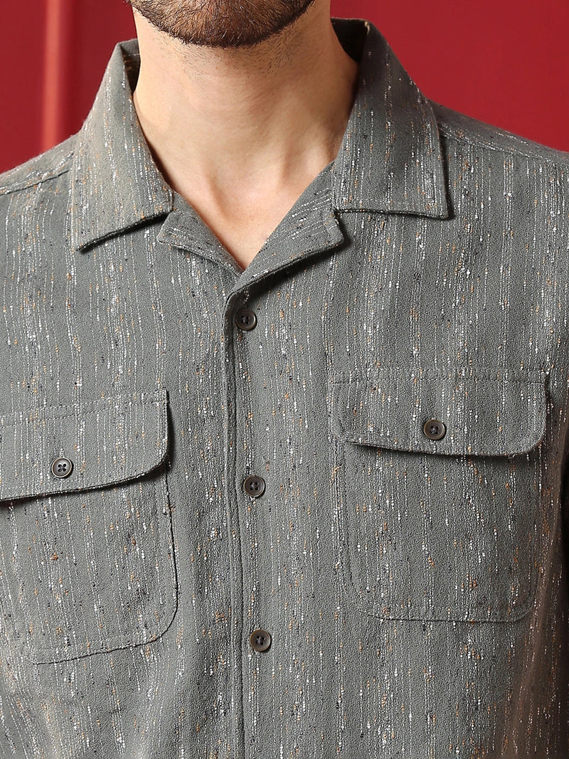 This shirt brings style and function together with a regular collar, double flap pockets, and a trendy front cut-and-sew design. Perfect for adding a little extra flair to your everyday look!