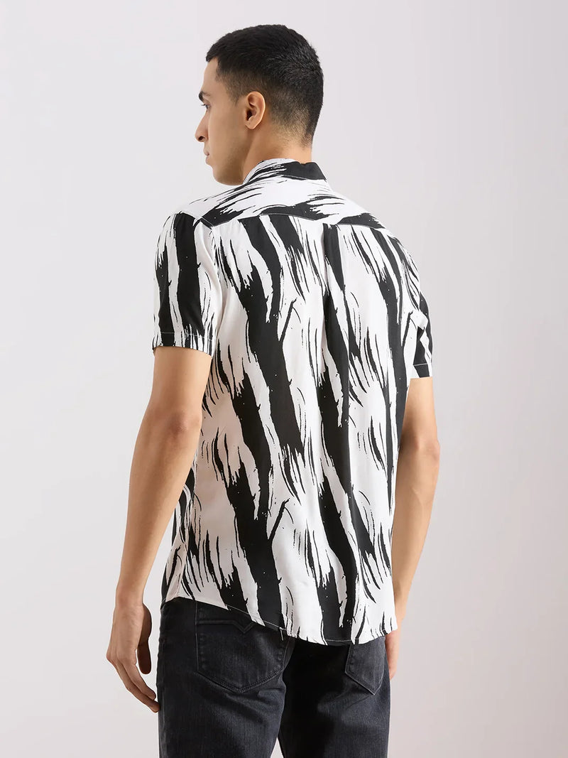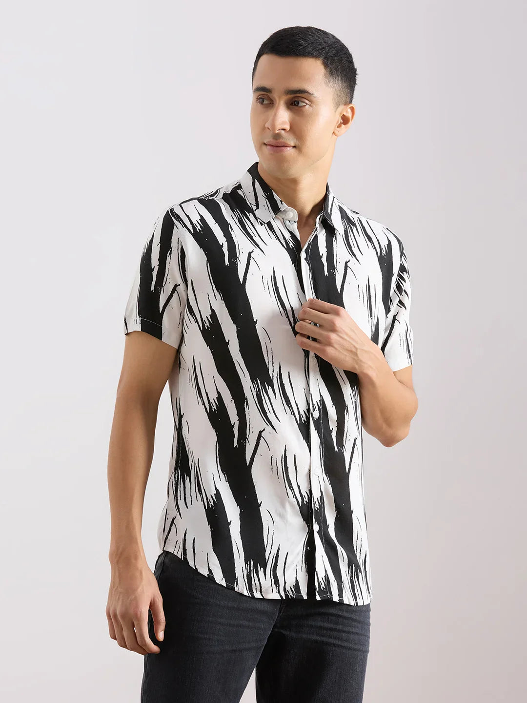 Valen Club Men's Casual Shirt With Spread Collar Viscose Rayon Short Sleeves Printed Shirt