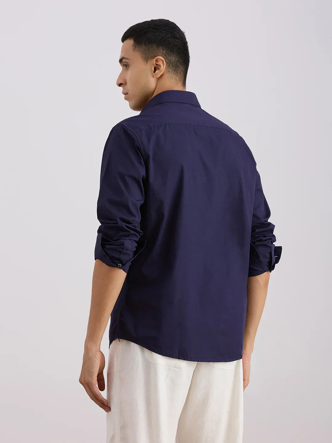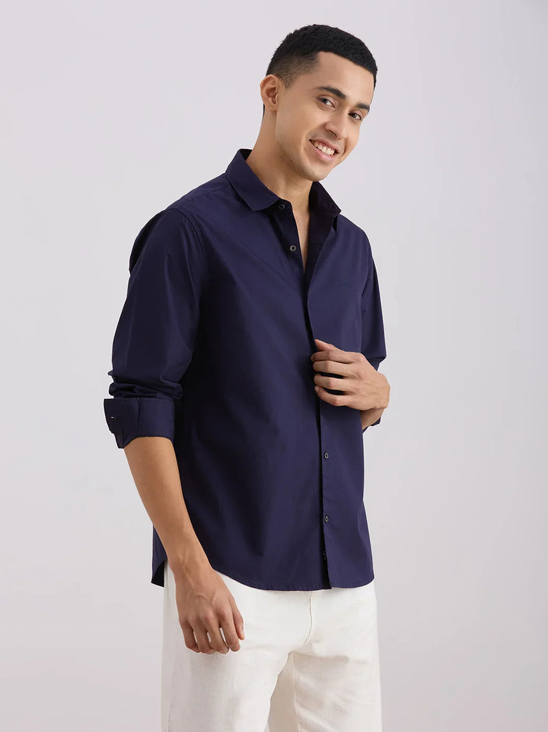 Valen Club Men's Casual Shirt With Spread Collar Cotton Long Sleeves Solid Shirt