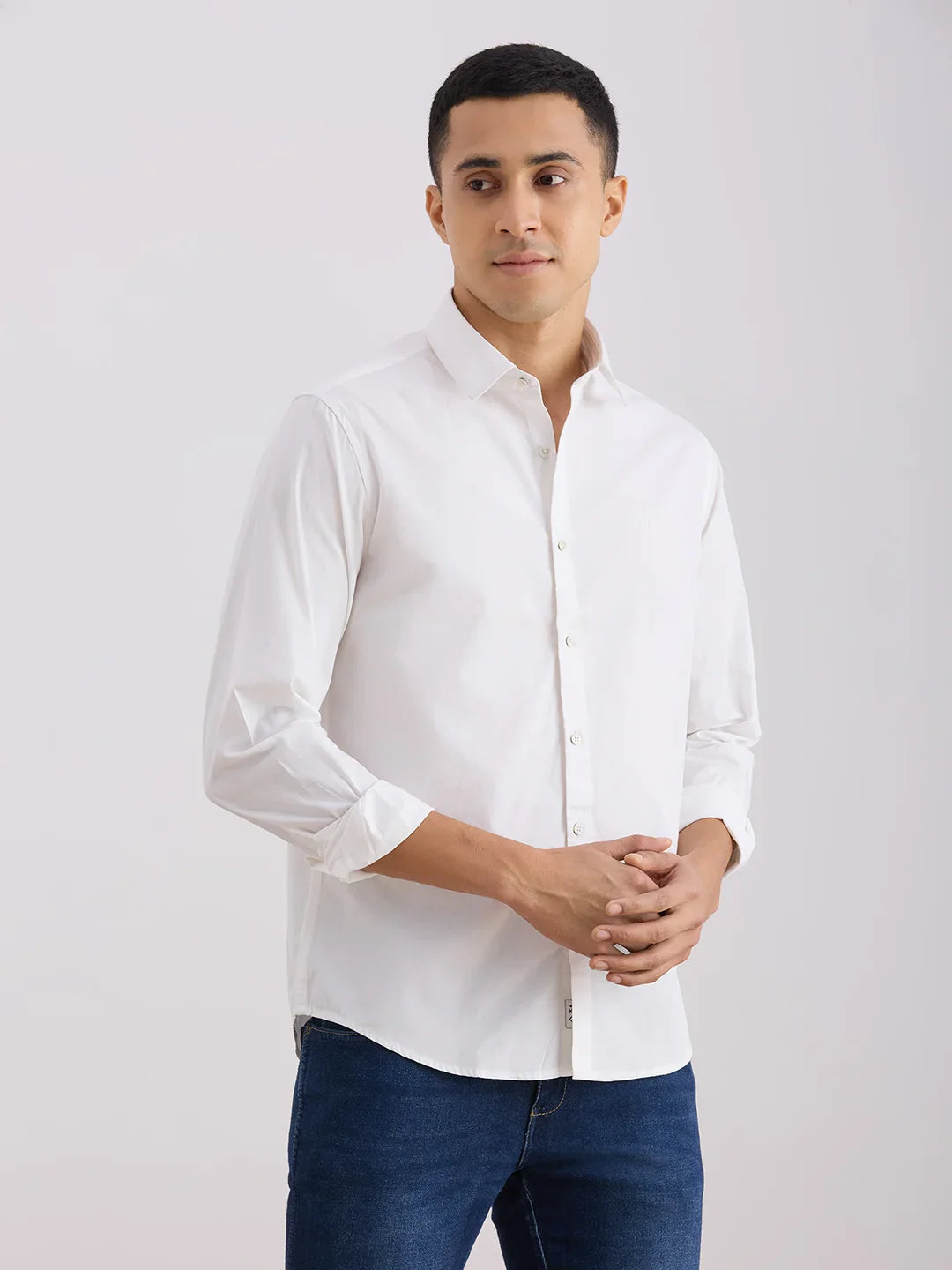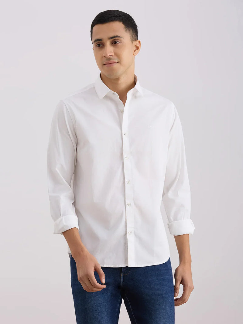Valen Club Men's Casual Shirt With Spread Collar Cotton Long Sleeves Solid Shirt
