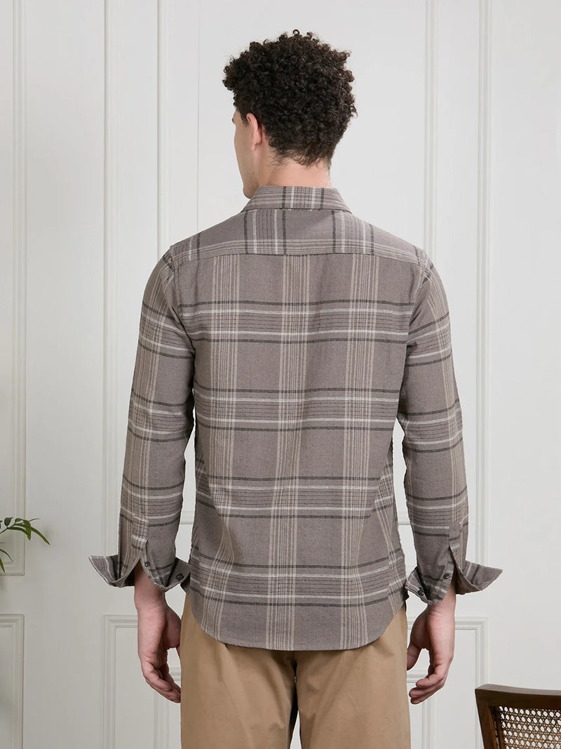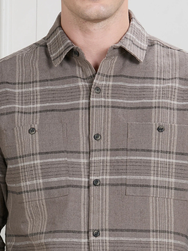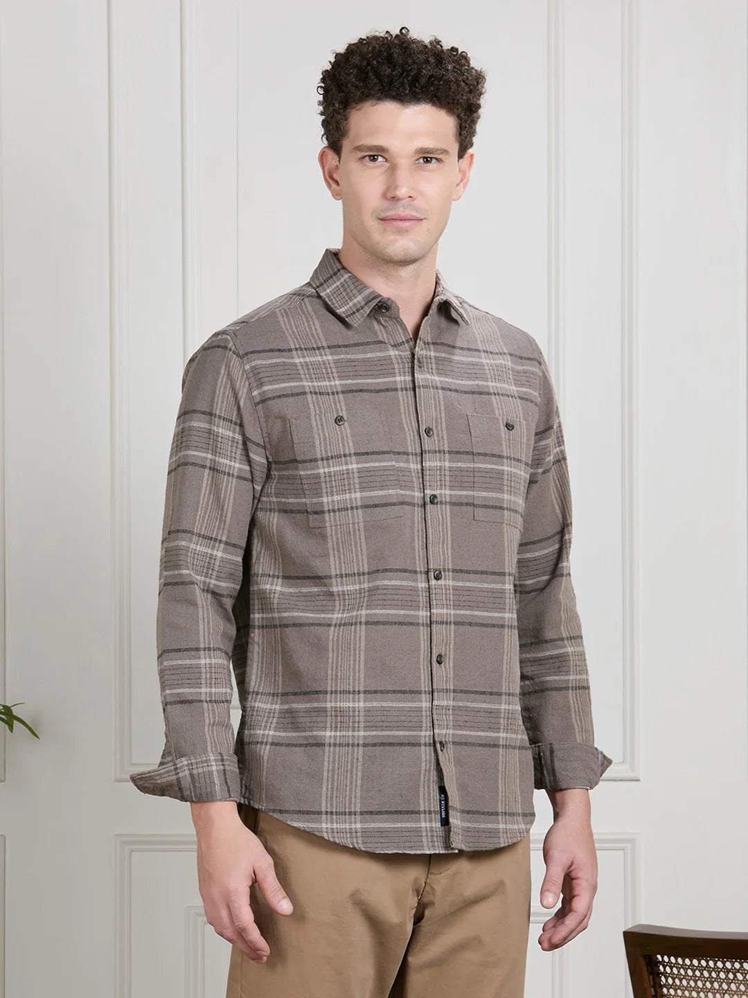 • Valen Club Men's Casual Shirt With Spread Collar Cotton Long Sleeves Checked Shirt
