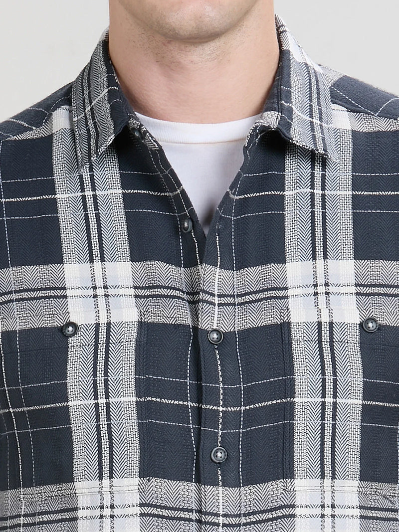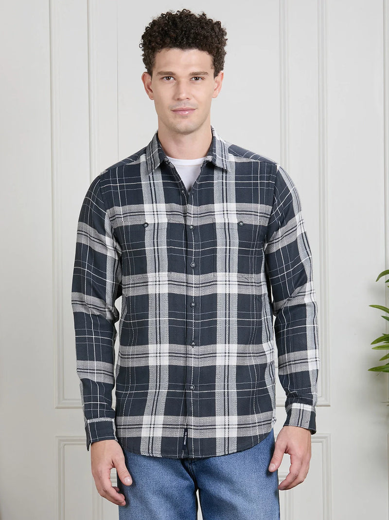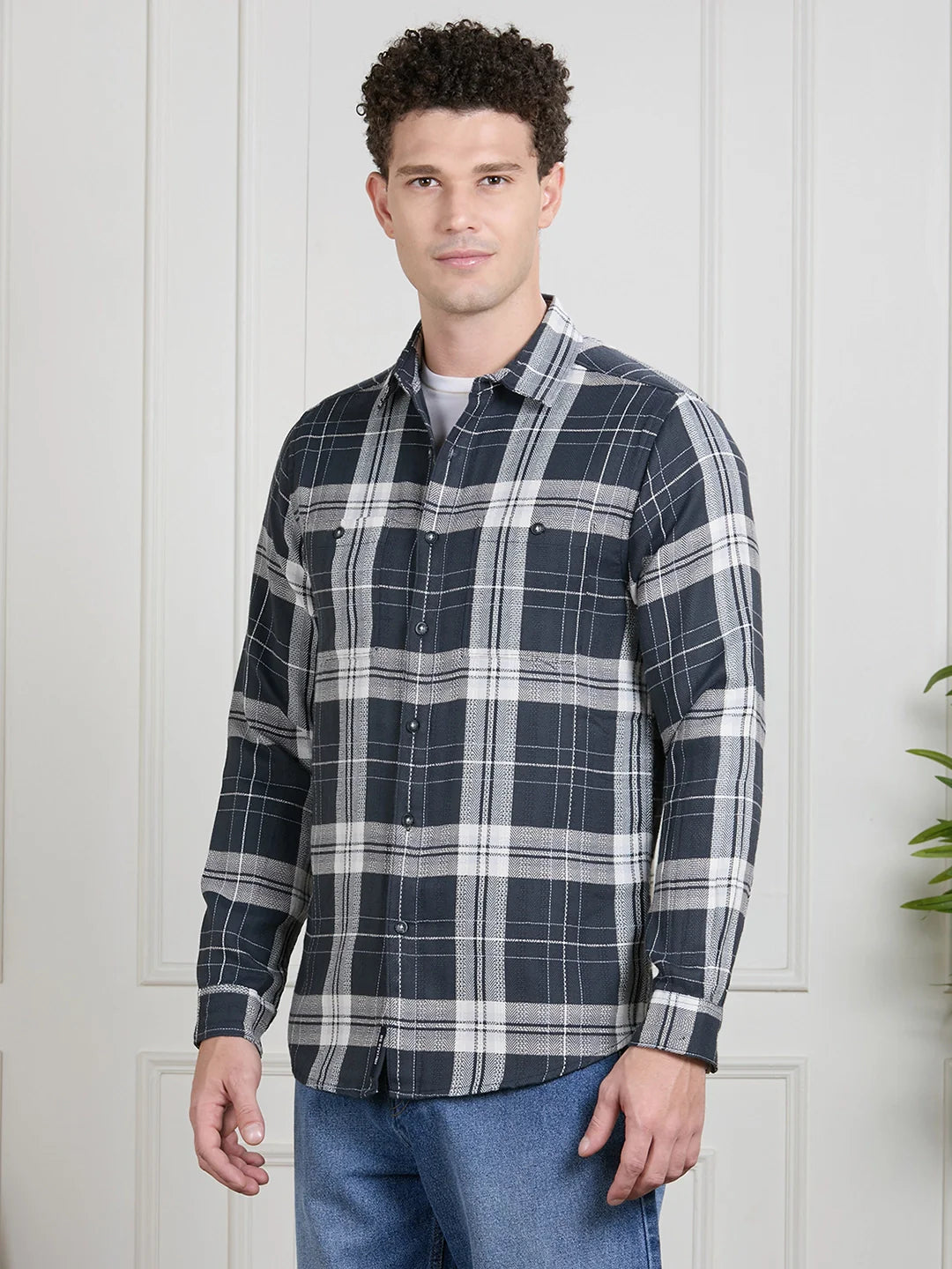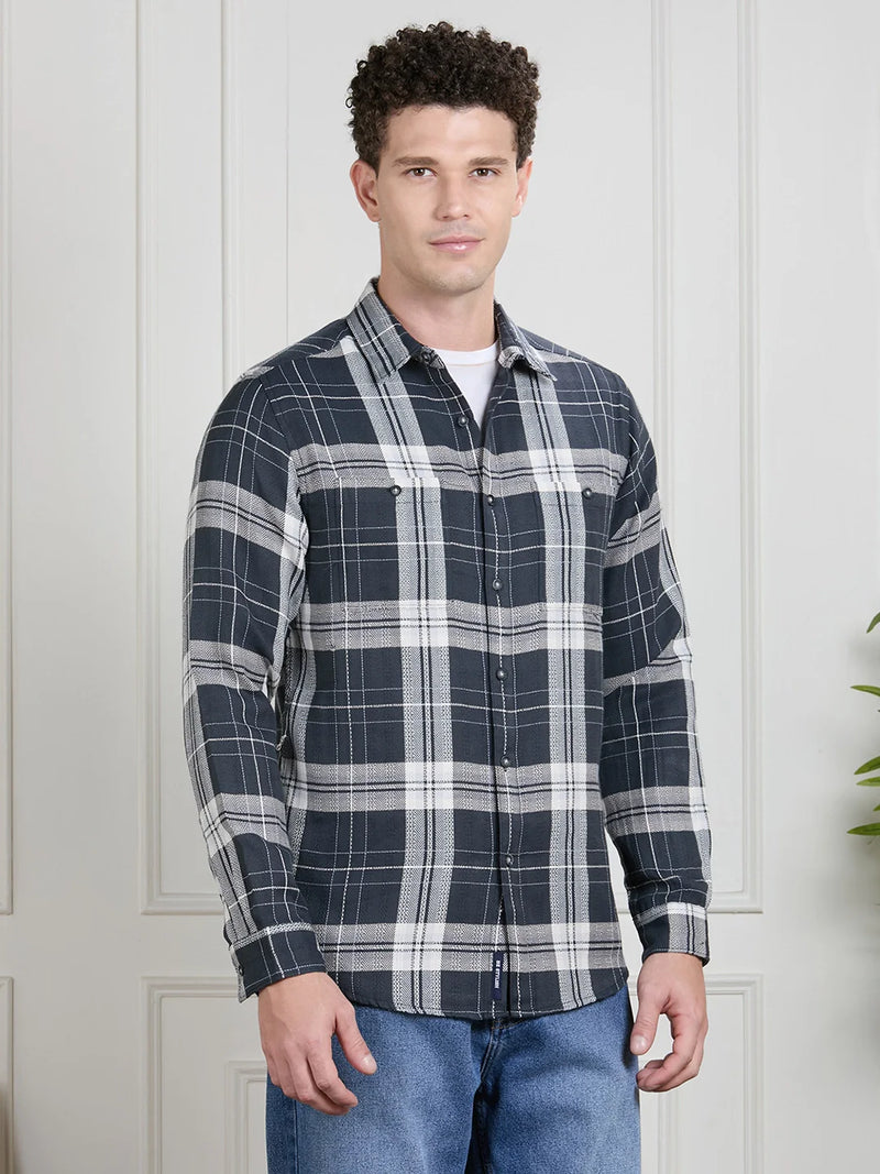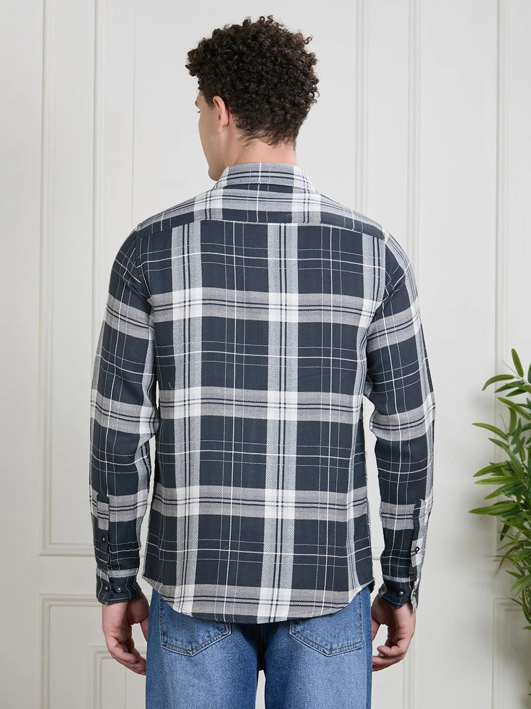 • Valen Club Men's Casual Shirt With Spread Collar Cotton Long Sleeves Checked Shirt