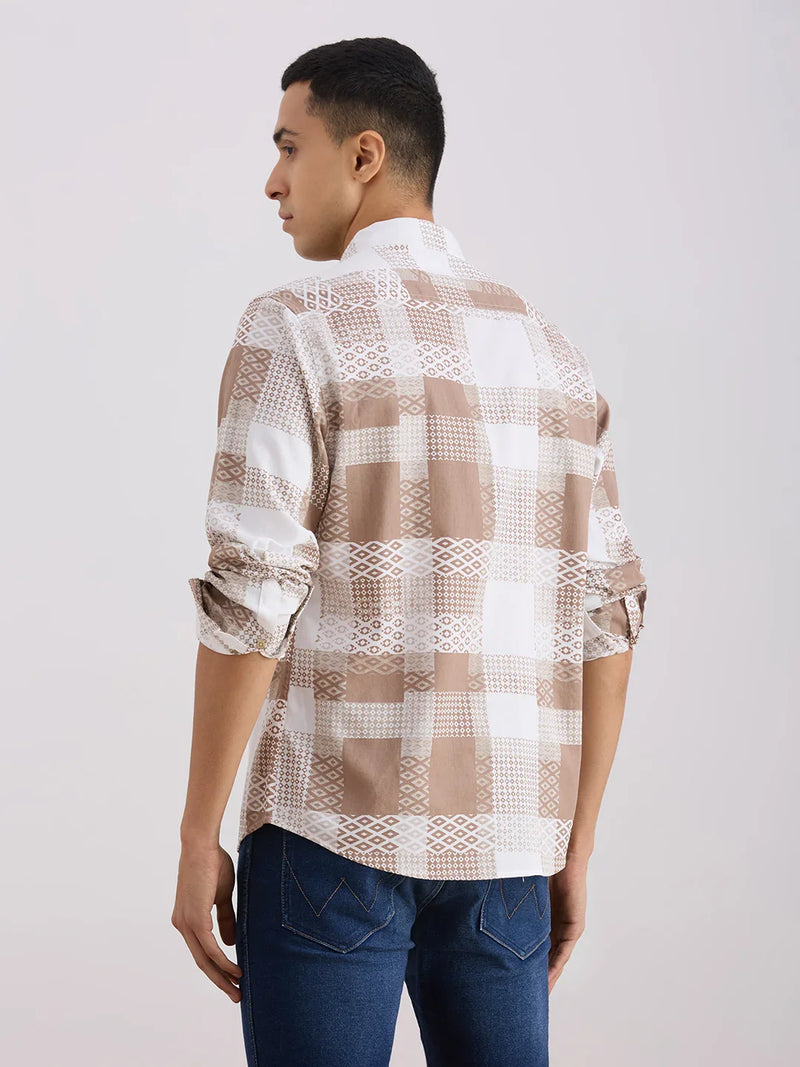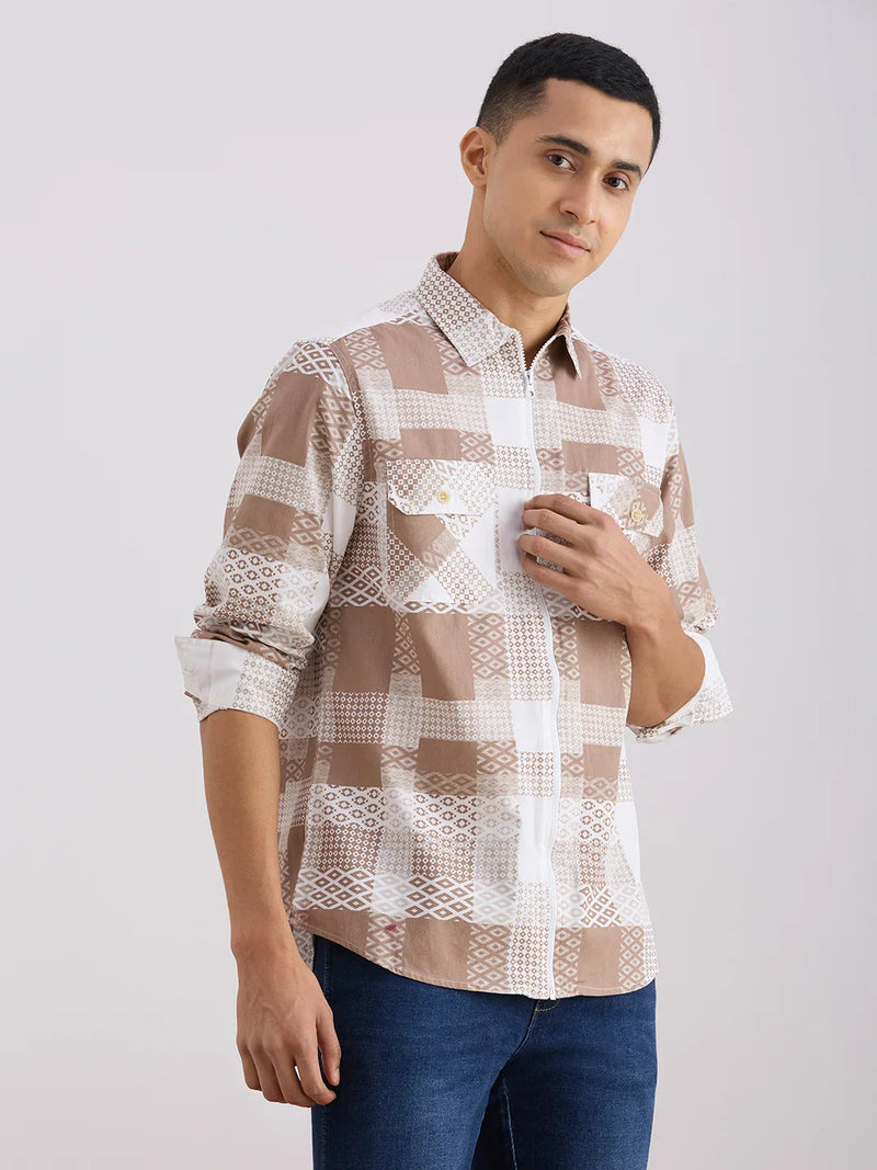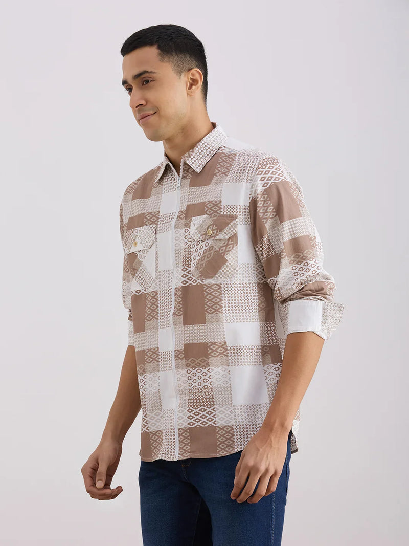 Valen Men's Casual Shirt With Spread Collar Cotton Long Sleeves Printed Shirt
