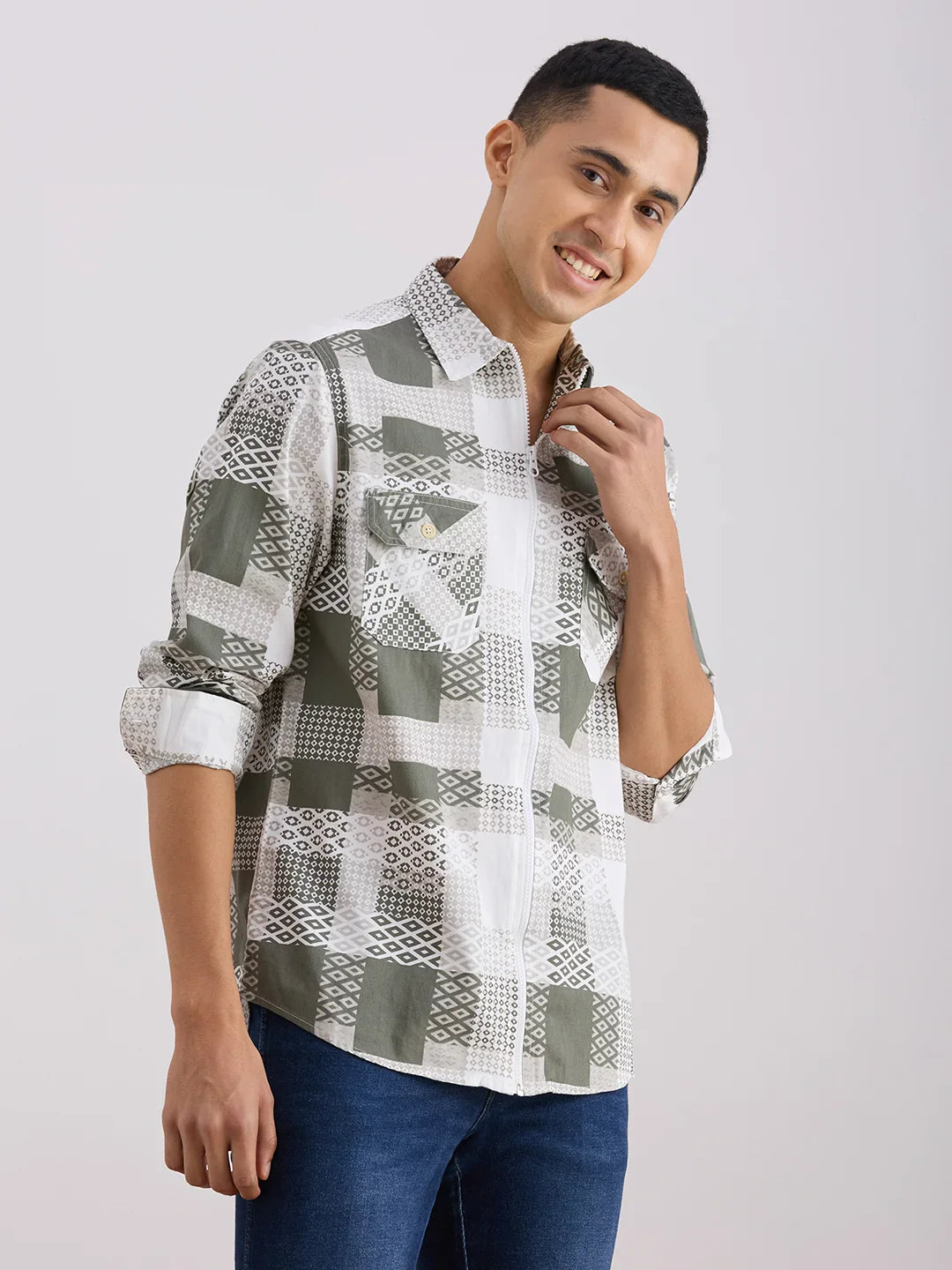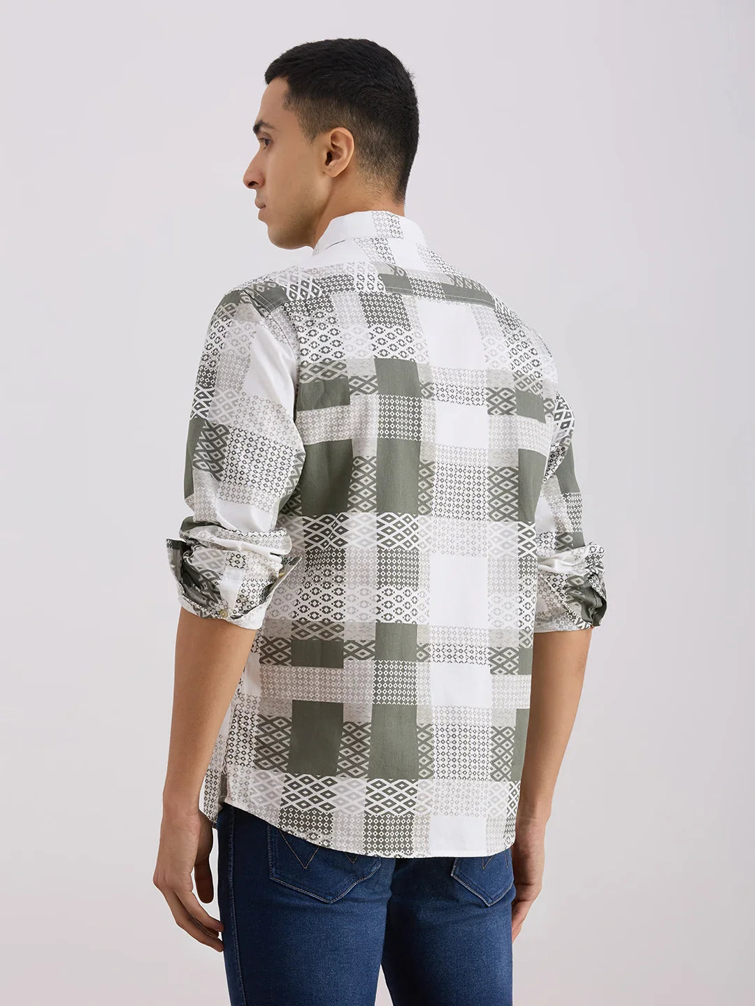 Valen Men's Casual Shirt With Spread Collar Cotton Long Sleeves Checked Shirt