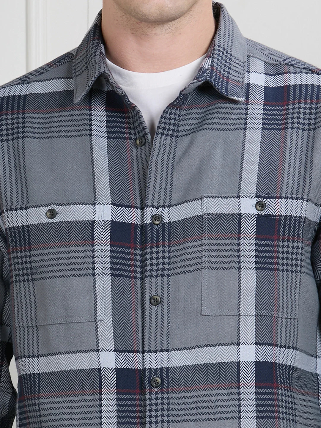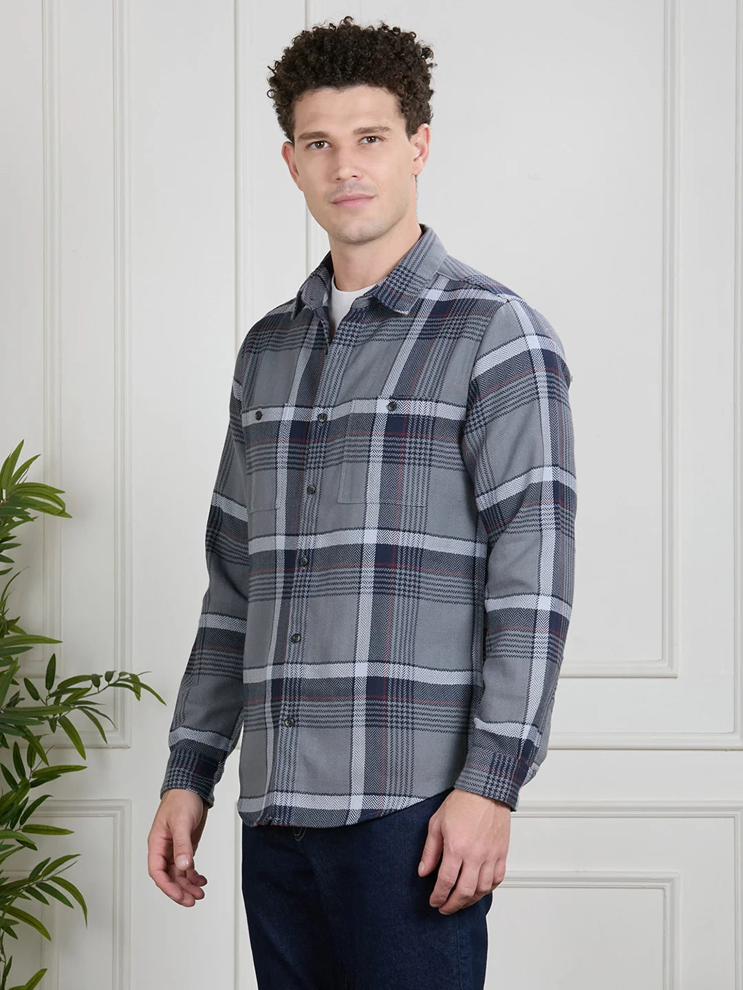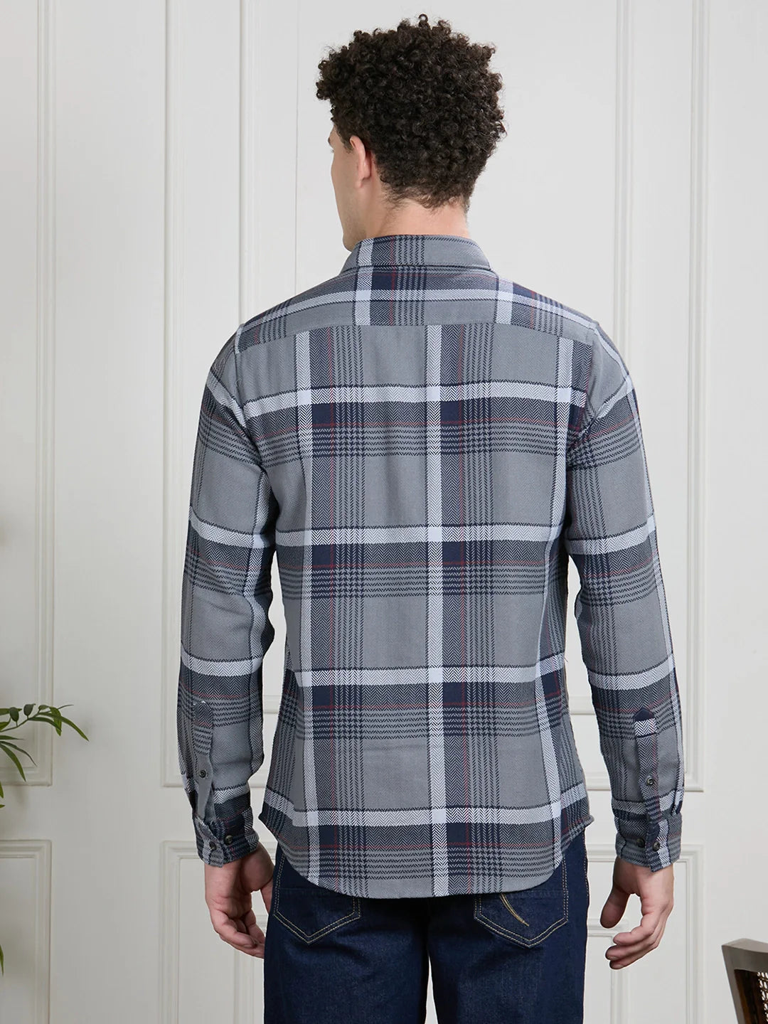 • Valen Club Men's Casual Shirt With Spread Collar Cotton Long Sleeves Checked Shirt