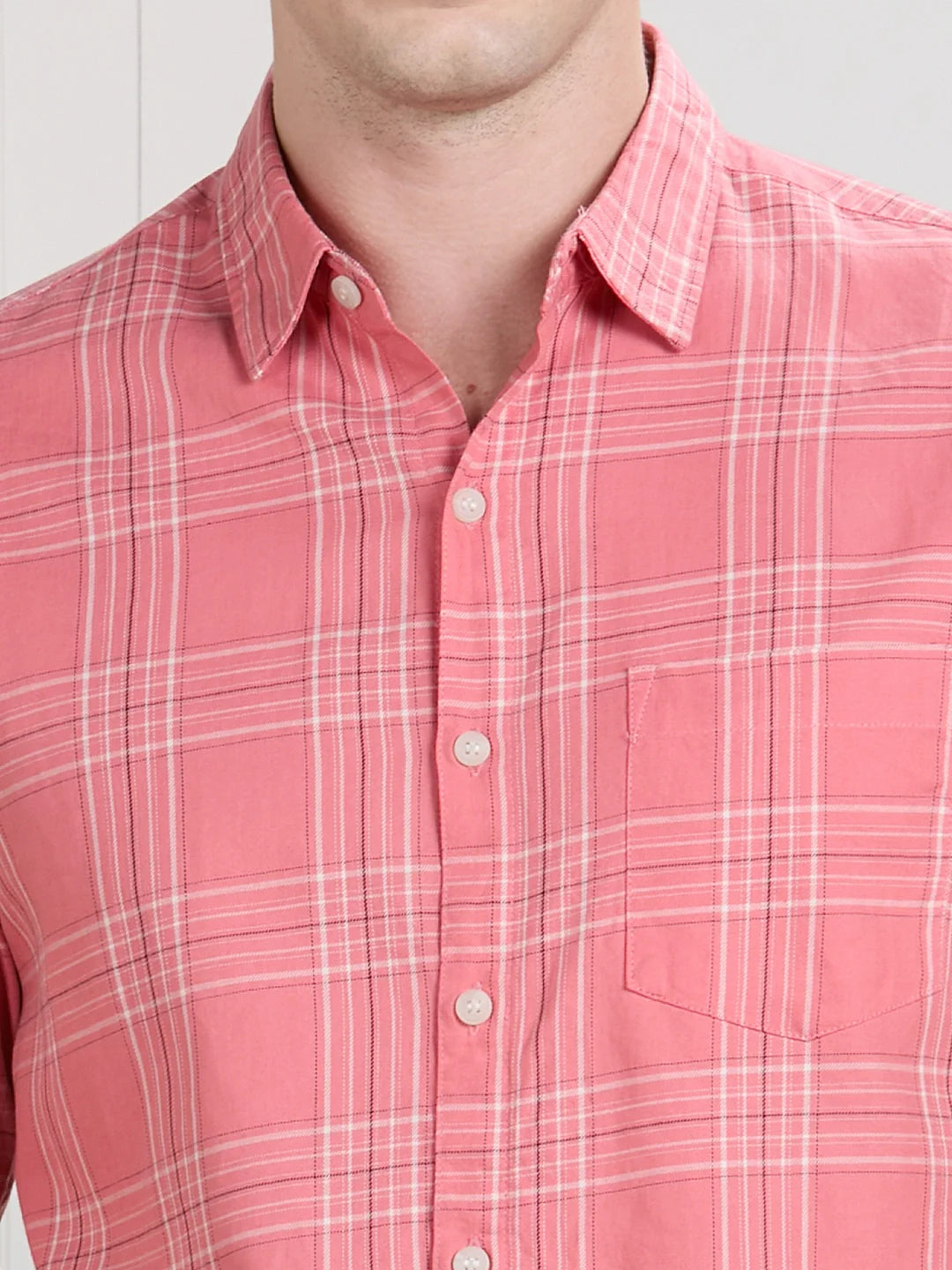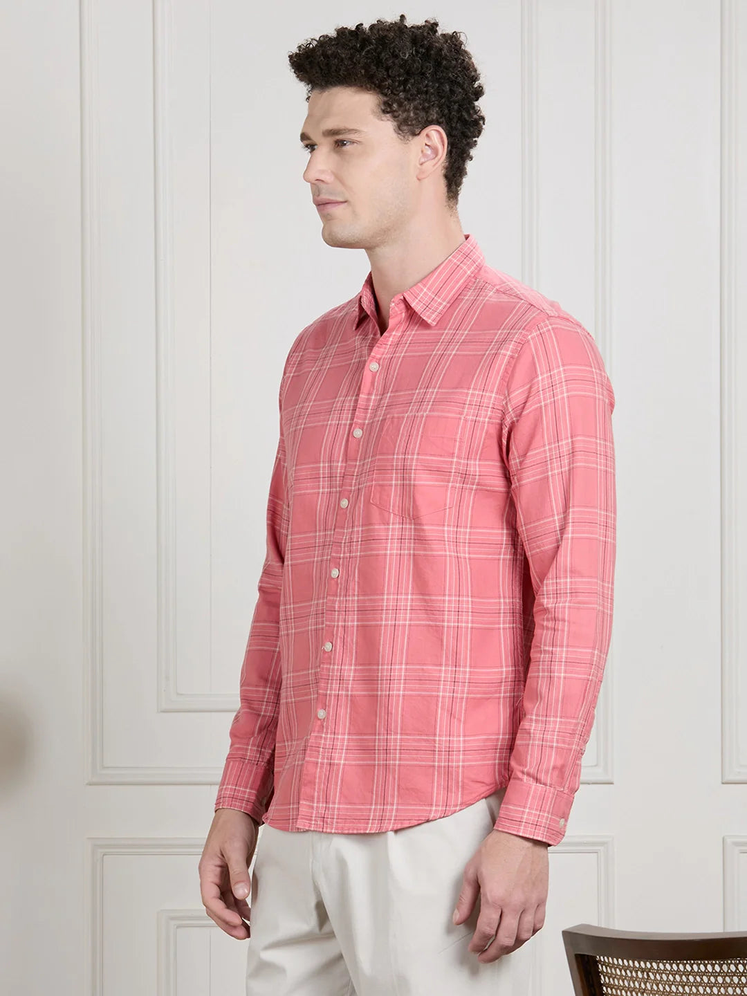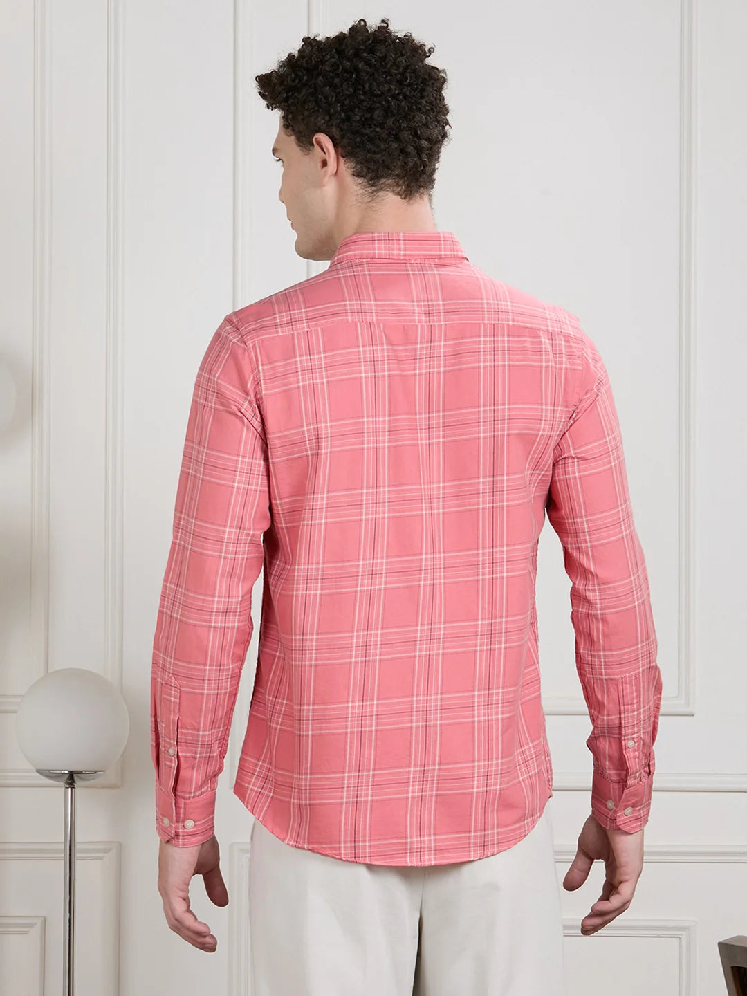 • Valen Club Men's Casual Shirt With Spread Collar Cotton Long Sleeves Checked Shirt
