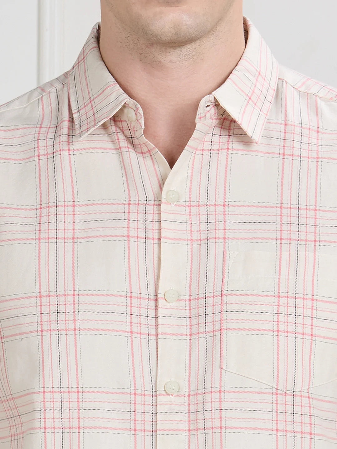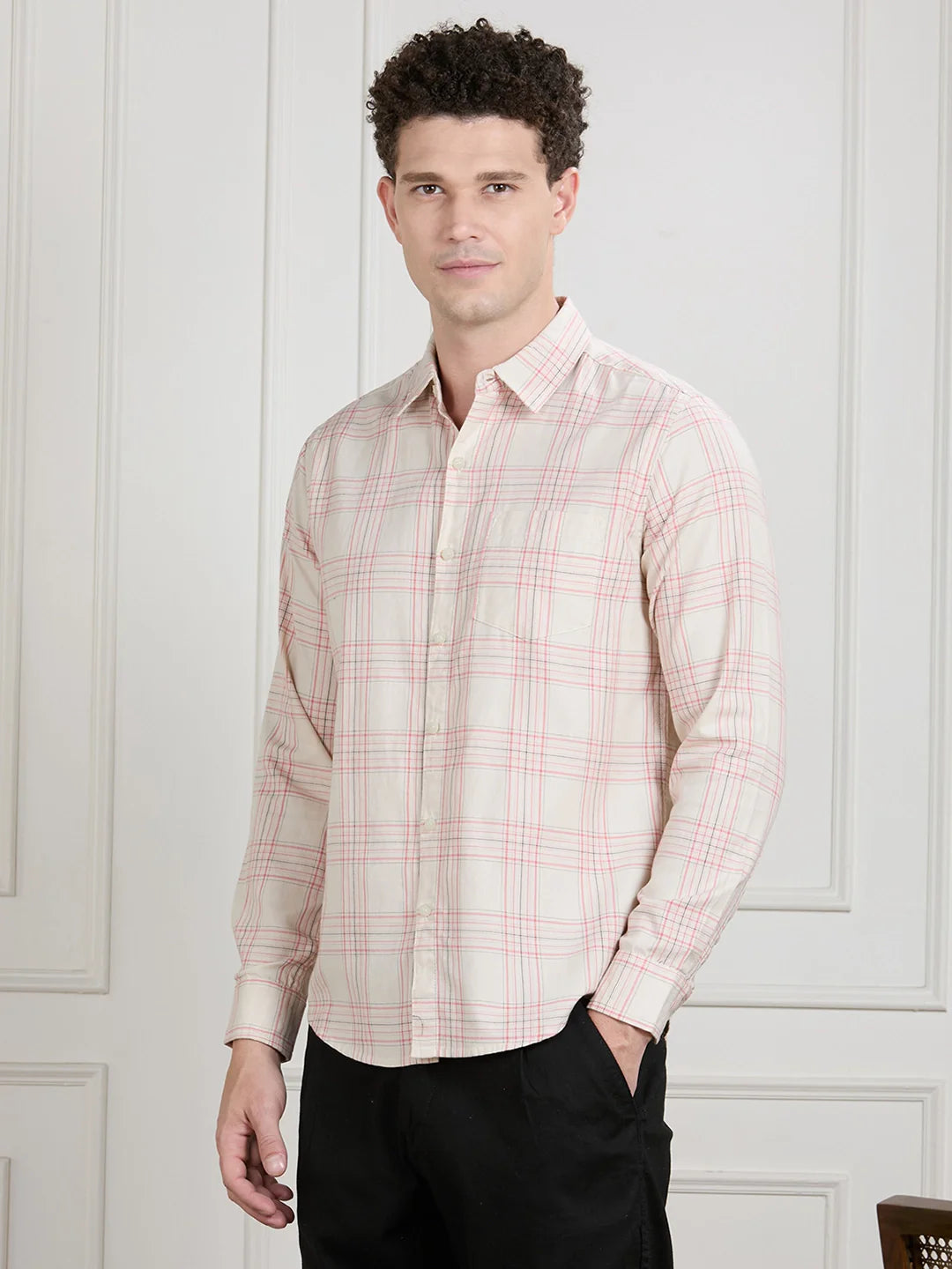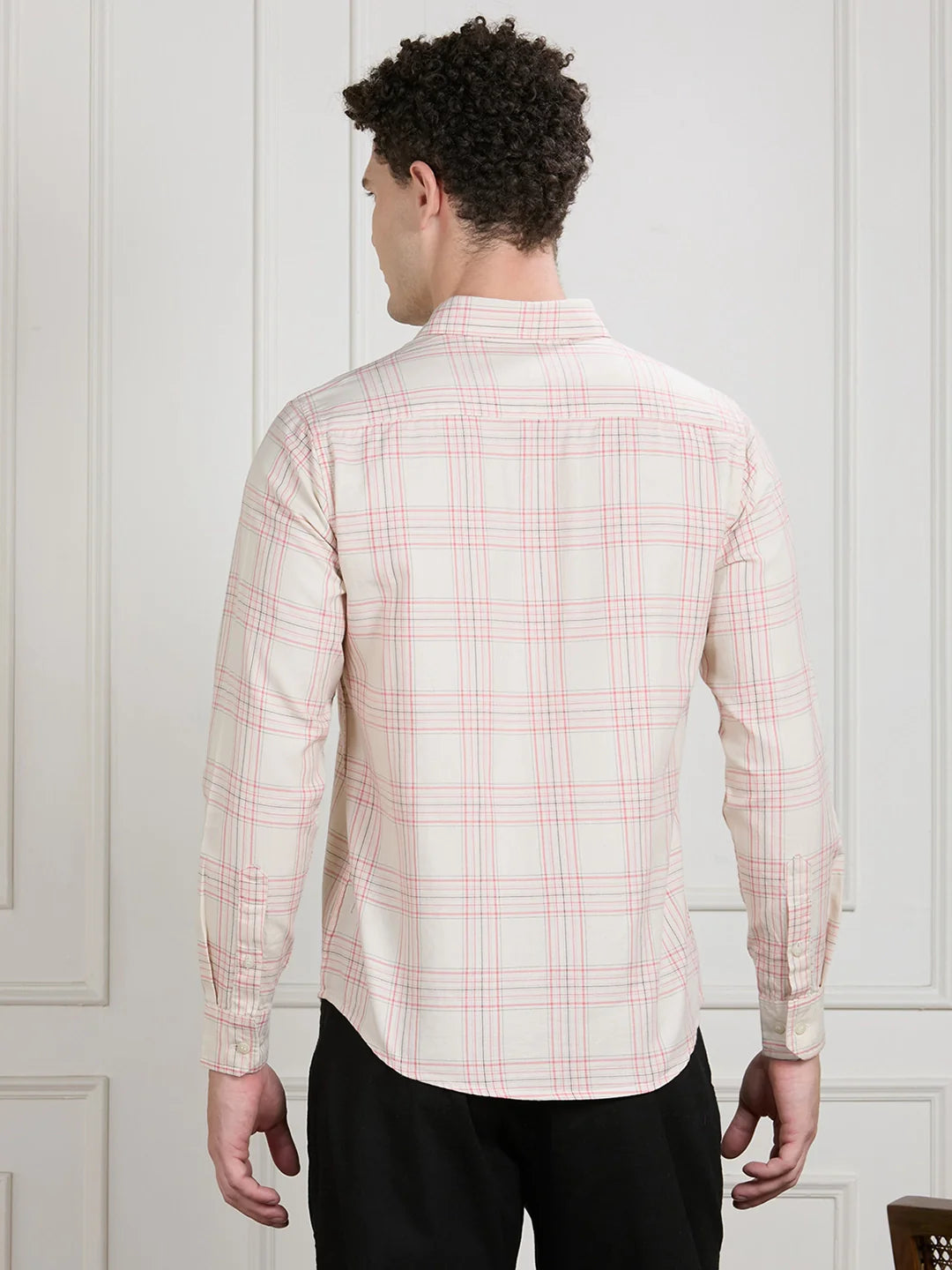 • Valen Club Men's Casual Shirt With Spread Collar Cotton Long Sleeves Checked Shirt