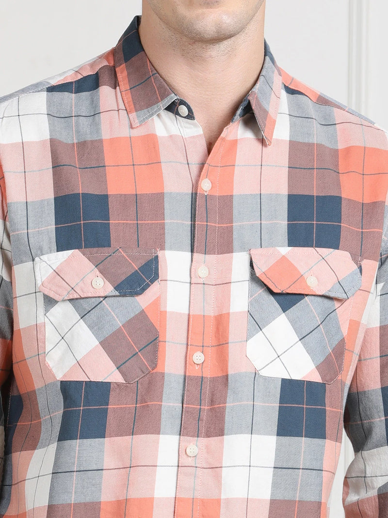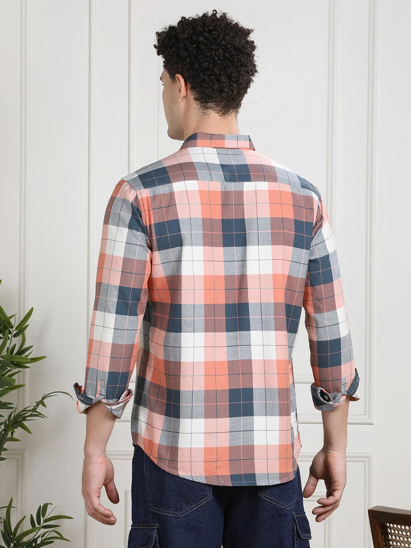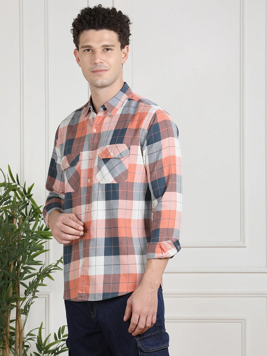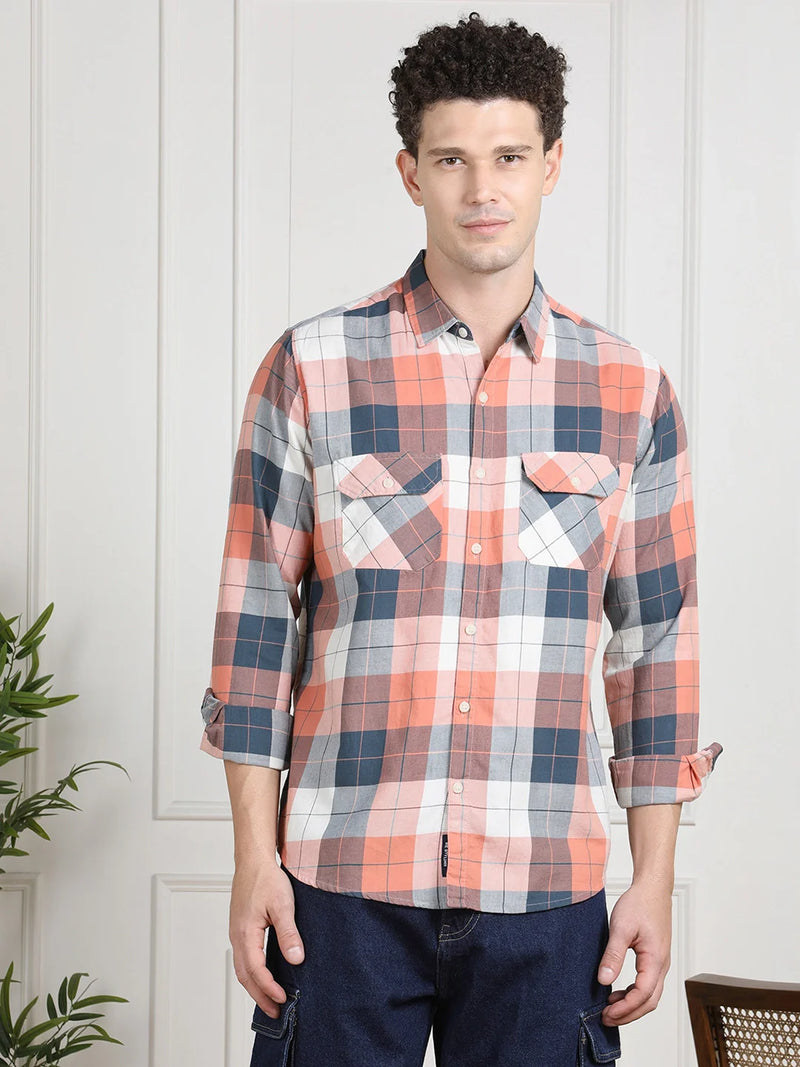 • Valen Club Men's Casual Shirt With Spread Collar Cotton Long Sleeves Checked Shirt