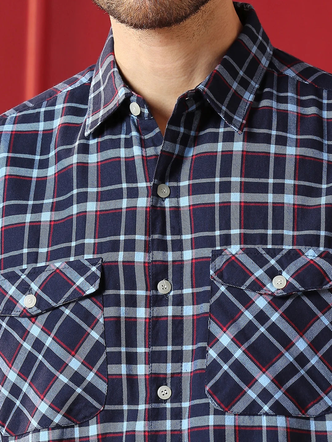 This shirt brings style and function together with a regular collar, double flap pockets, and a trendy front cut-and-sew design. Perfect for adding a little extra flair to your everyday look!