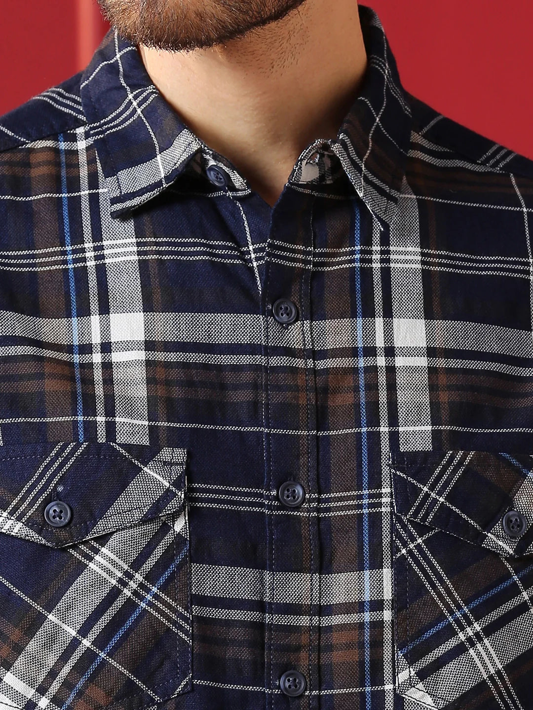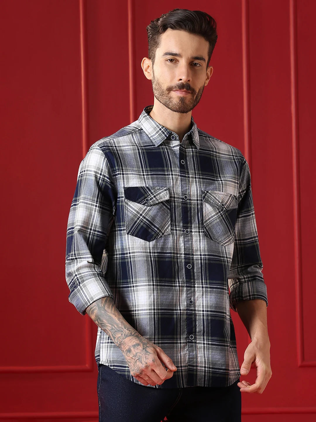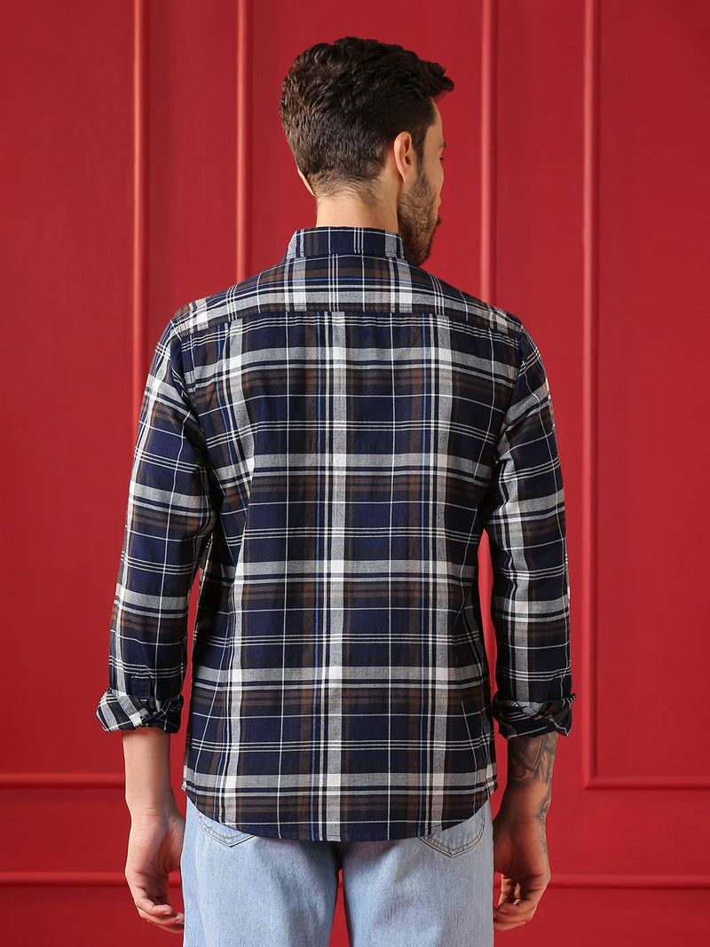 • Valen Club Men's Casual Shirt With Spread Collar Cotton Long Sleeves Checked Shirt